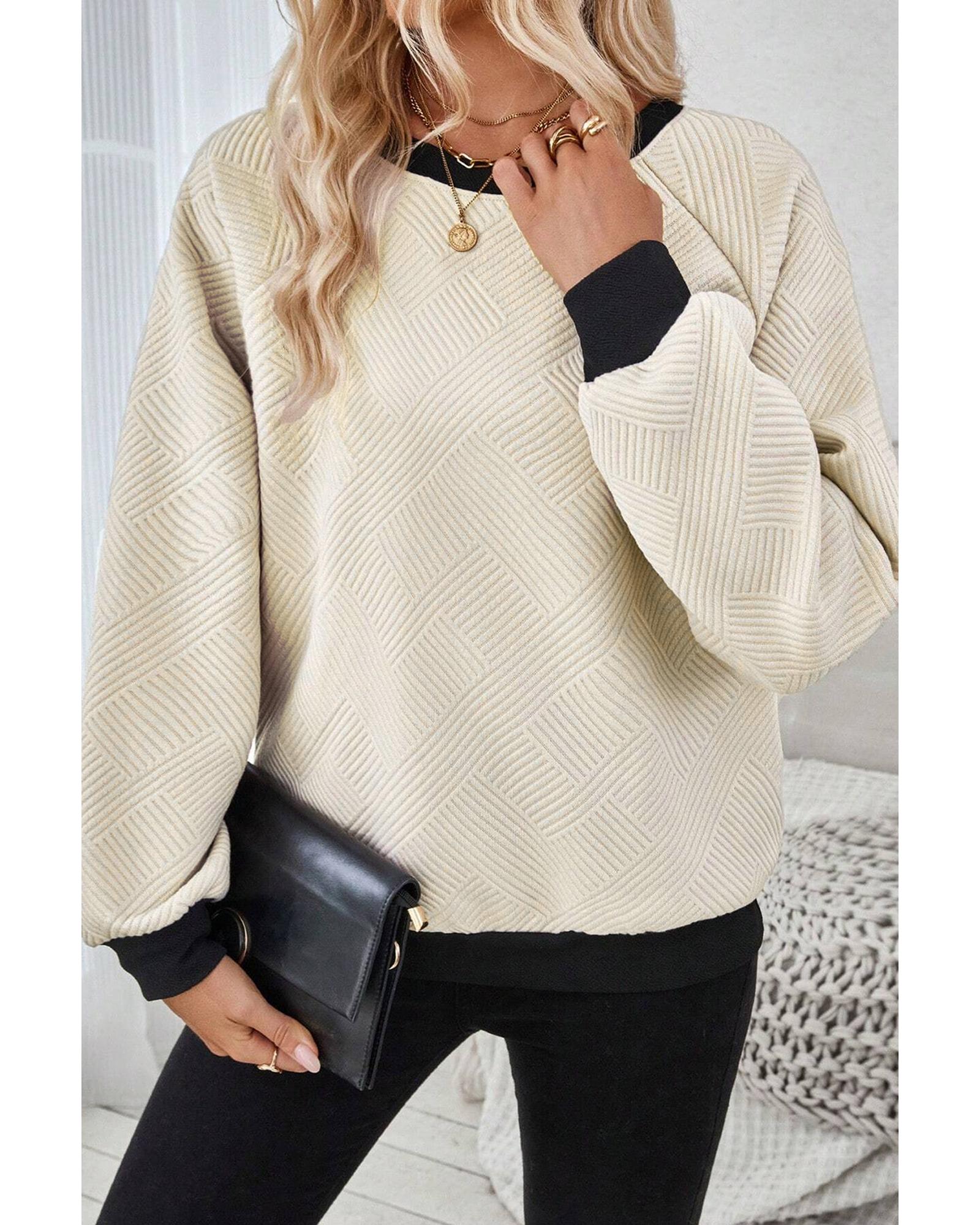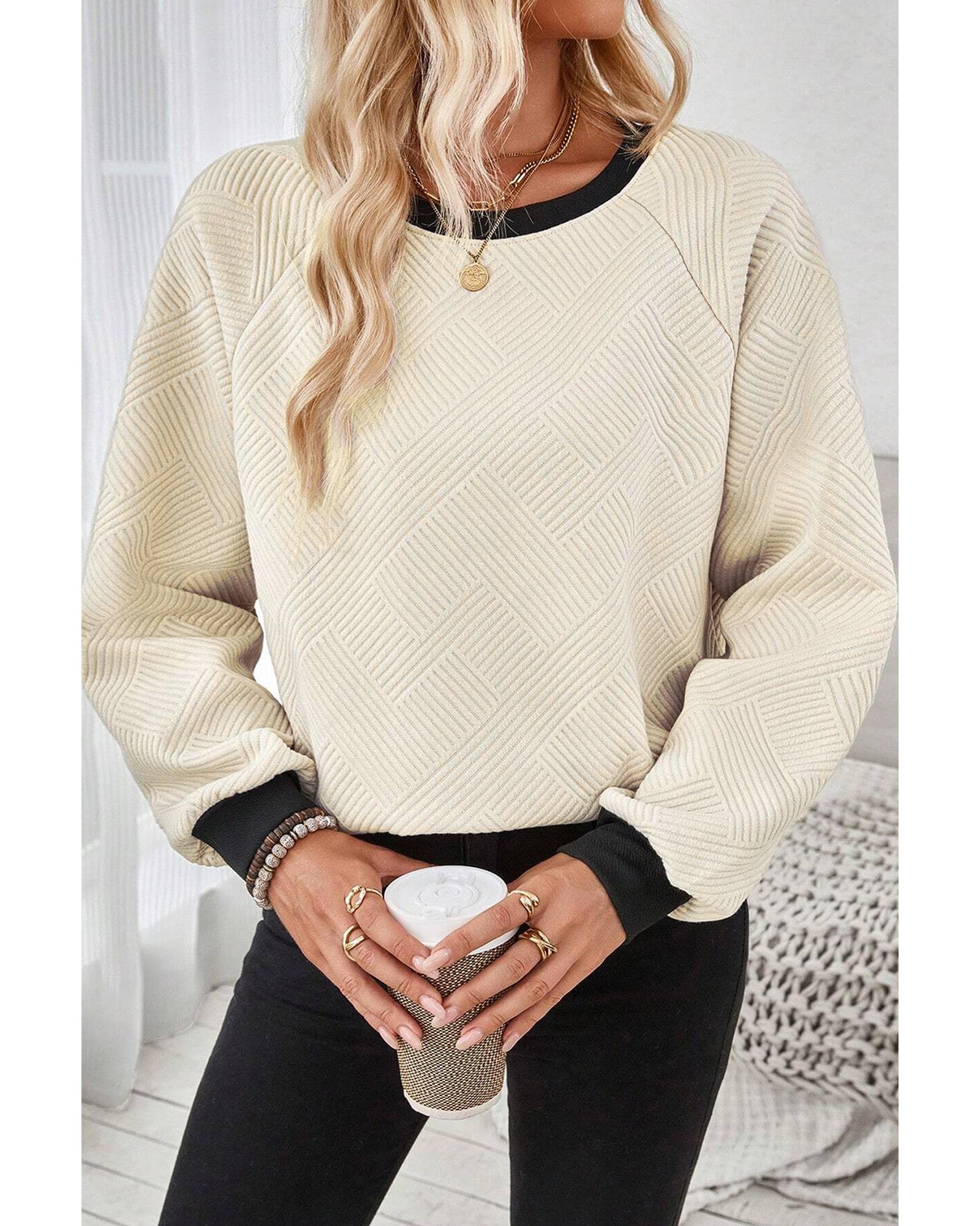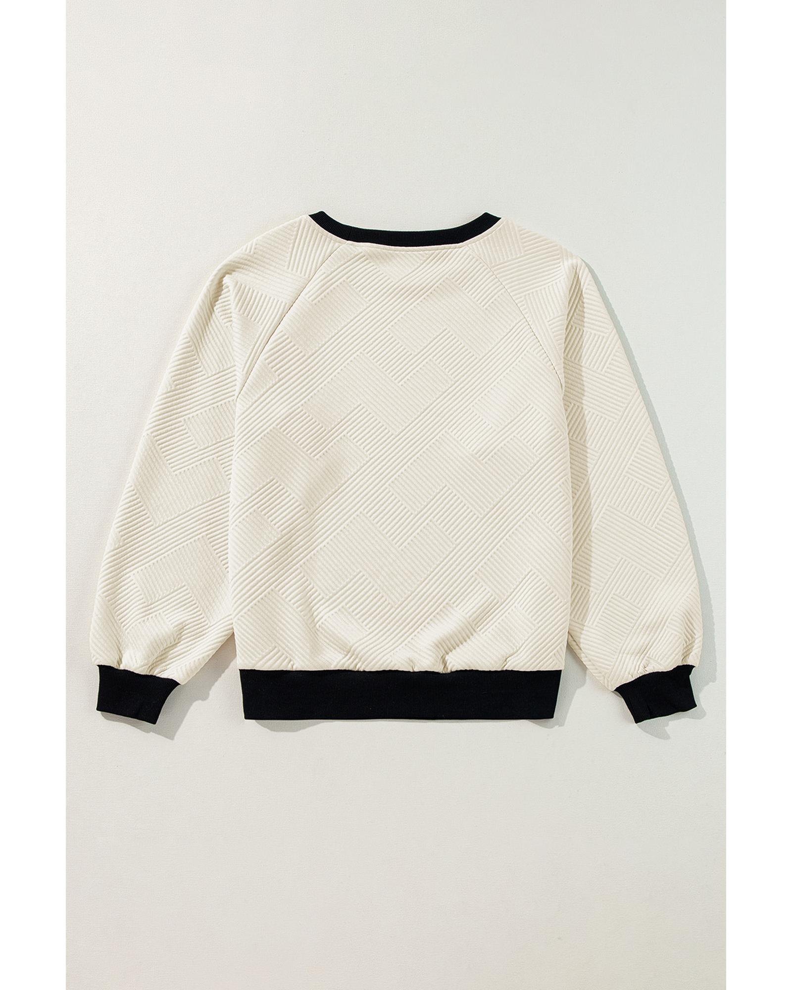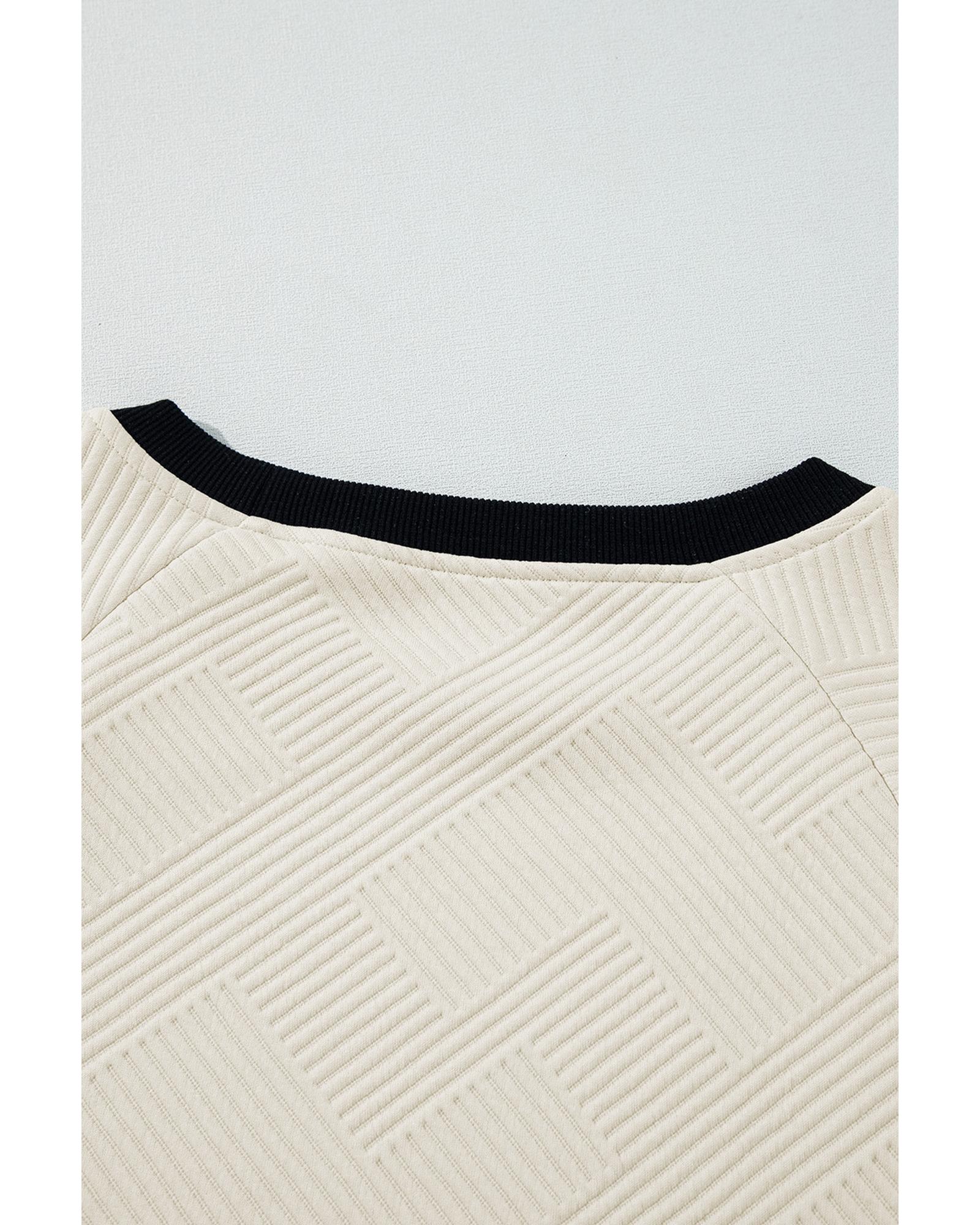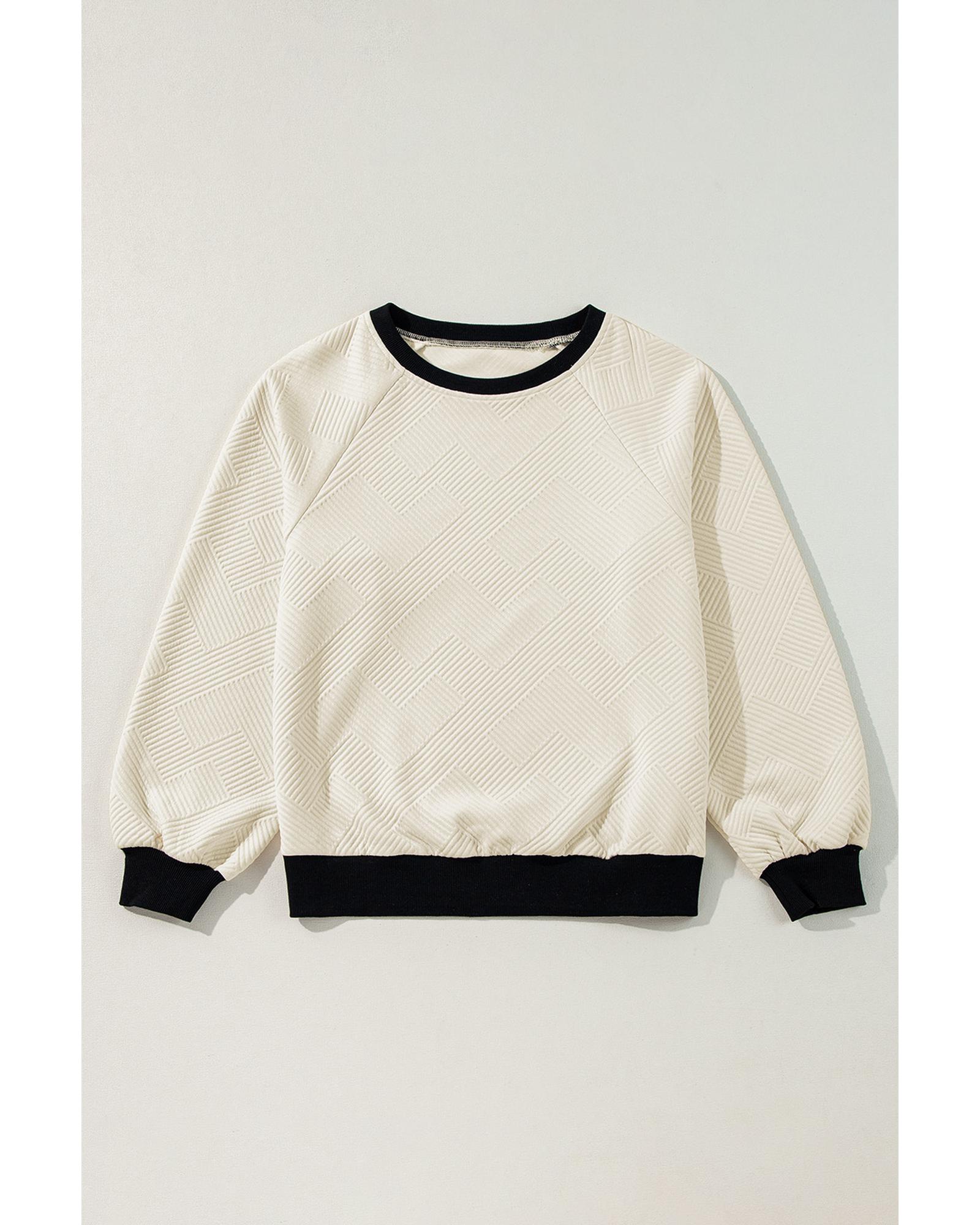 • Jet Stream Color Block Edge Raglan Sleeve Crew Neck Textured Top