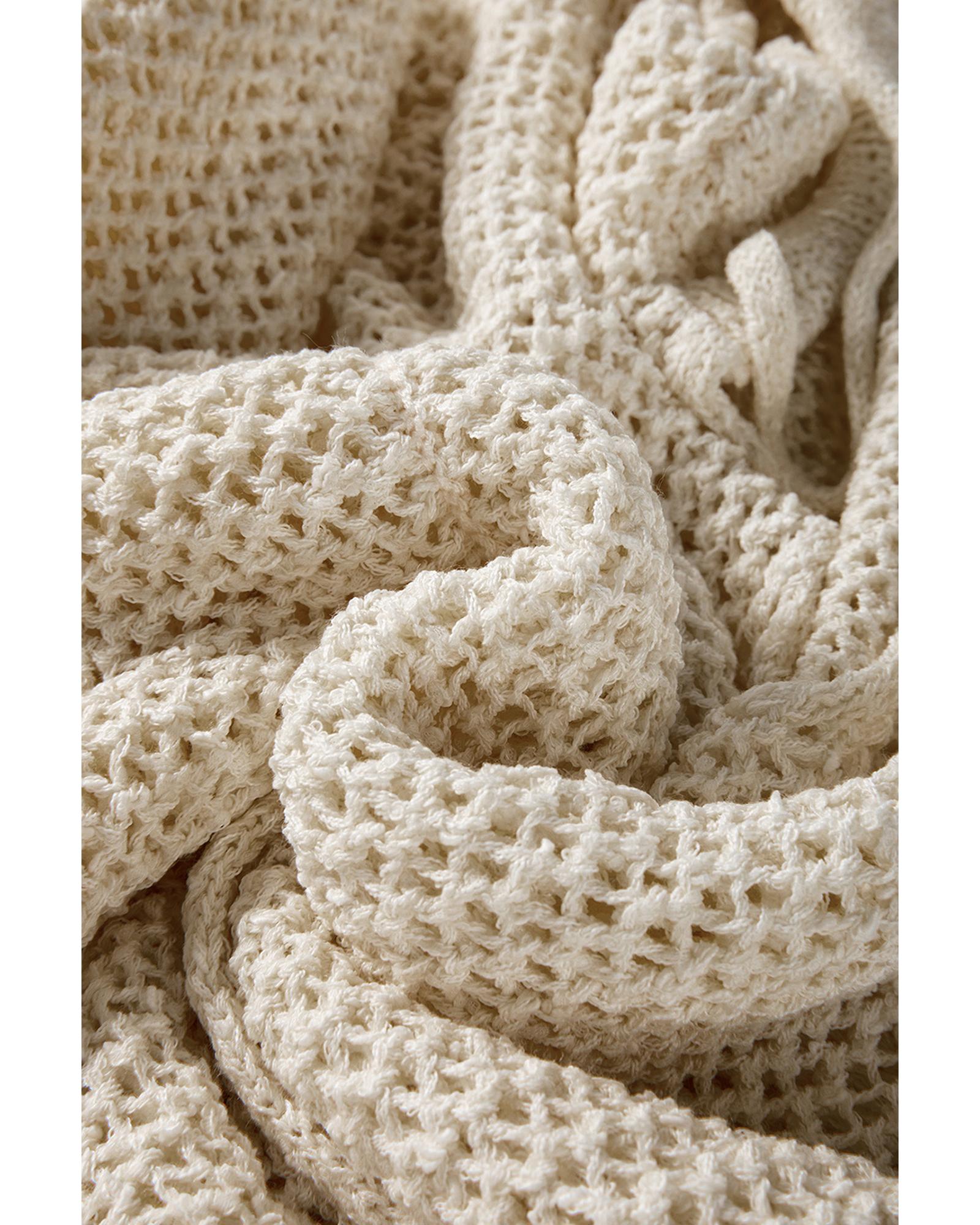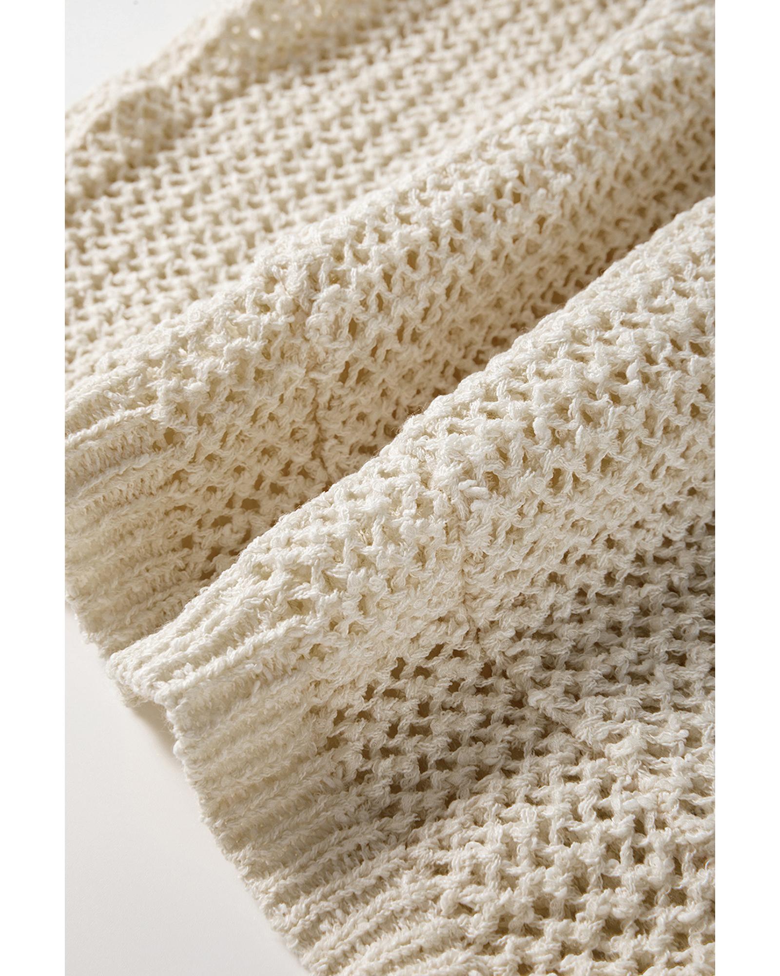 Pale Khaki Scalloped Hem V Neck Crochet Knit Vest - M