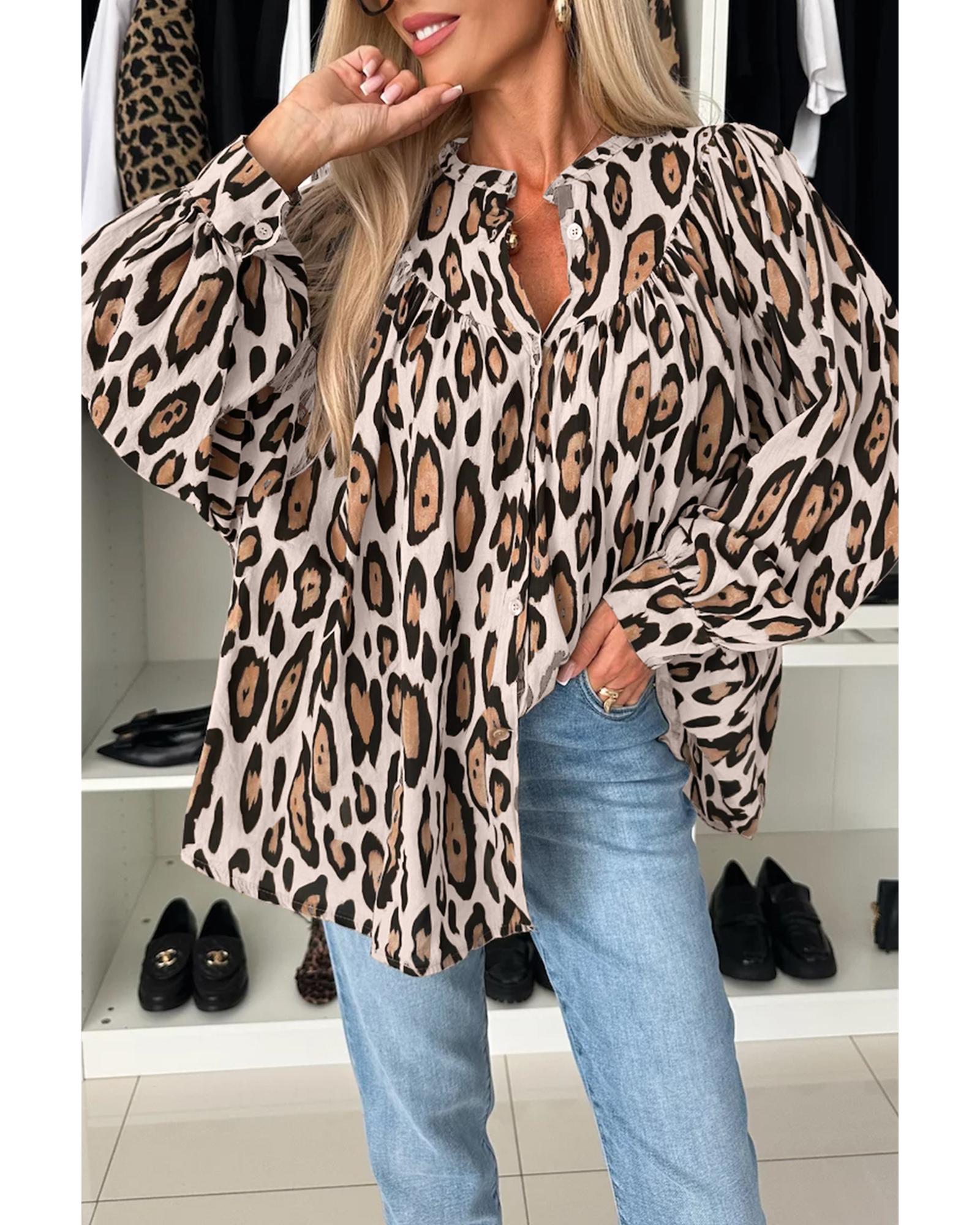 Jet Stream Oversized Leopard Print Balloon Sleeve Casual Shirt – S