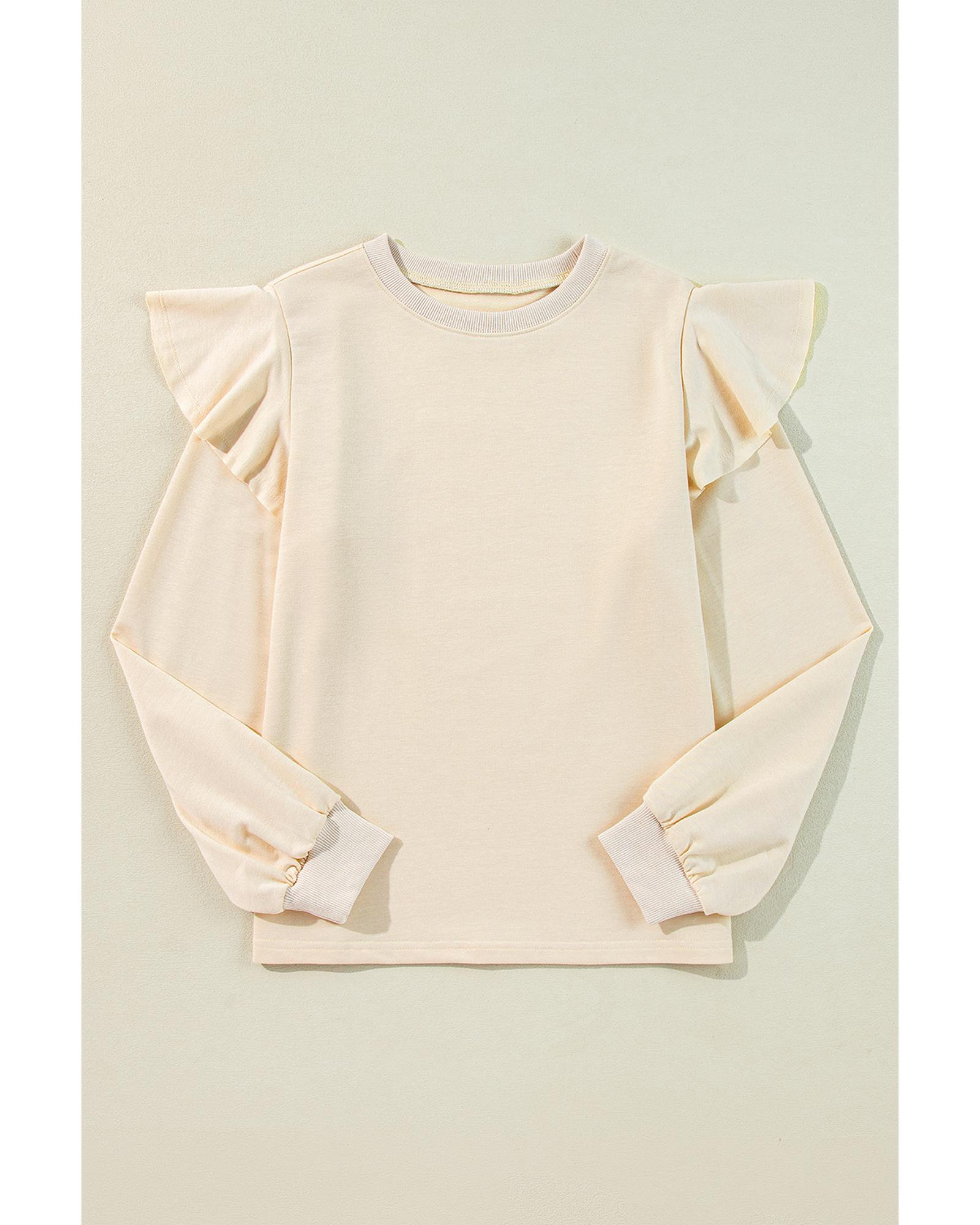 Jet Stream Solid Color Ruffled Shoulder Long Sleeve Blouse – XL