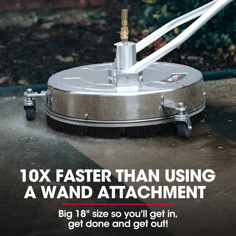 The Jet-USA 18′ Stainless Steel Pressure Washer Surface Cleaner Attachment is the perfect tool to clean your concrete driveway, patio, deck or garage floor. This easy gliding disk puts powerful cleaning and ease of use at your disposal with the wide 46cm cleaning area.