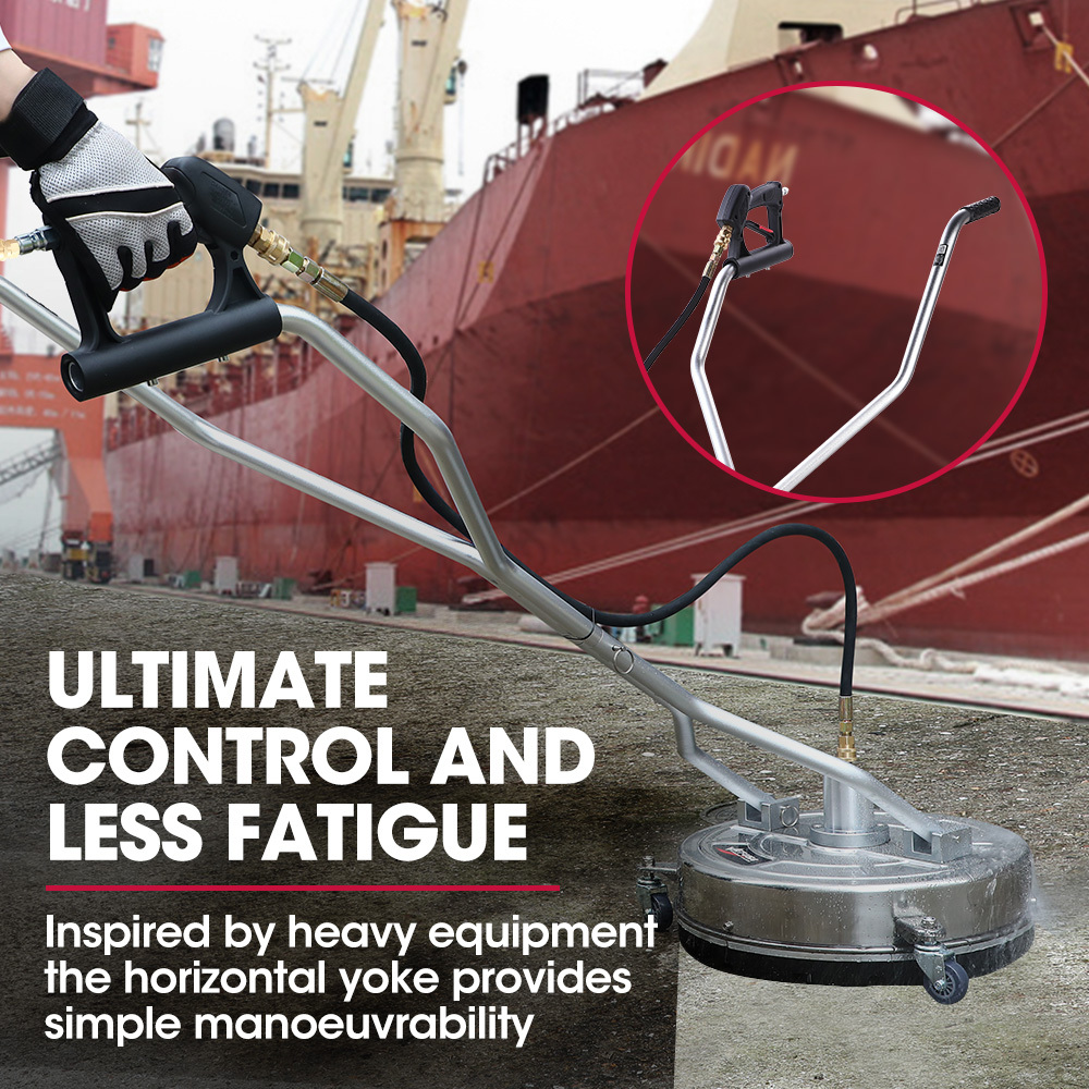 Jet-USA 18″ Stainless Steel Pressure Washer Surface Cleaner with Yoke Handlebar, 3/8″ Fitting, For Concrete Driveway Patio Floor