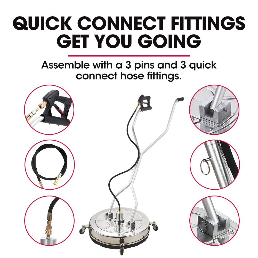 The Jet-USA 24′ Stainless Steel Pressure Washer Surface Cleaner Attachment is the perfect tool to clean your concrete driveway, patio, deck or garage floor. This easy gliding disk puts powerful cleaning and ease of use at your disposal with the super-wide 61cm cleaning area.