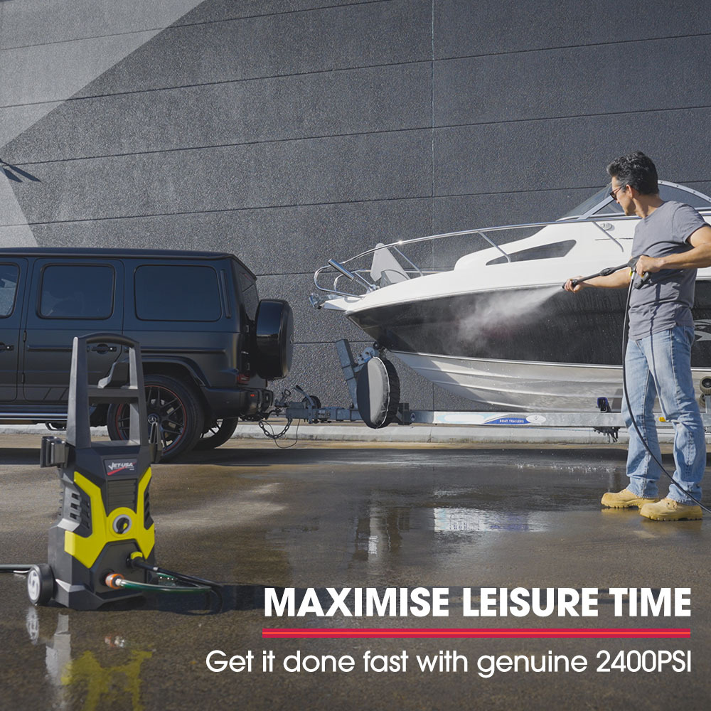 Harnessing an impressive 2400 PSI of pure cleaning power, powered by a robust 1700w motor, the Jet USA Electric Pressure Washer delivers outstanding performance that will effortlessly tackle even the toughest grime and dirt.