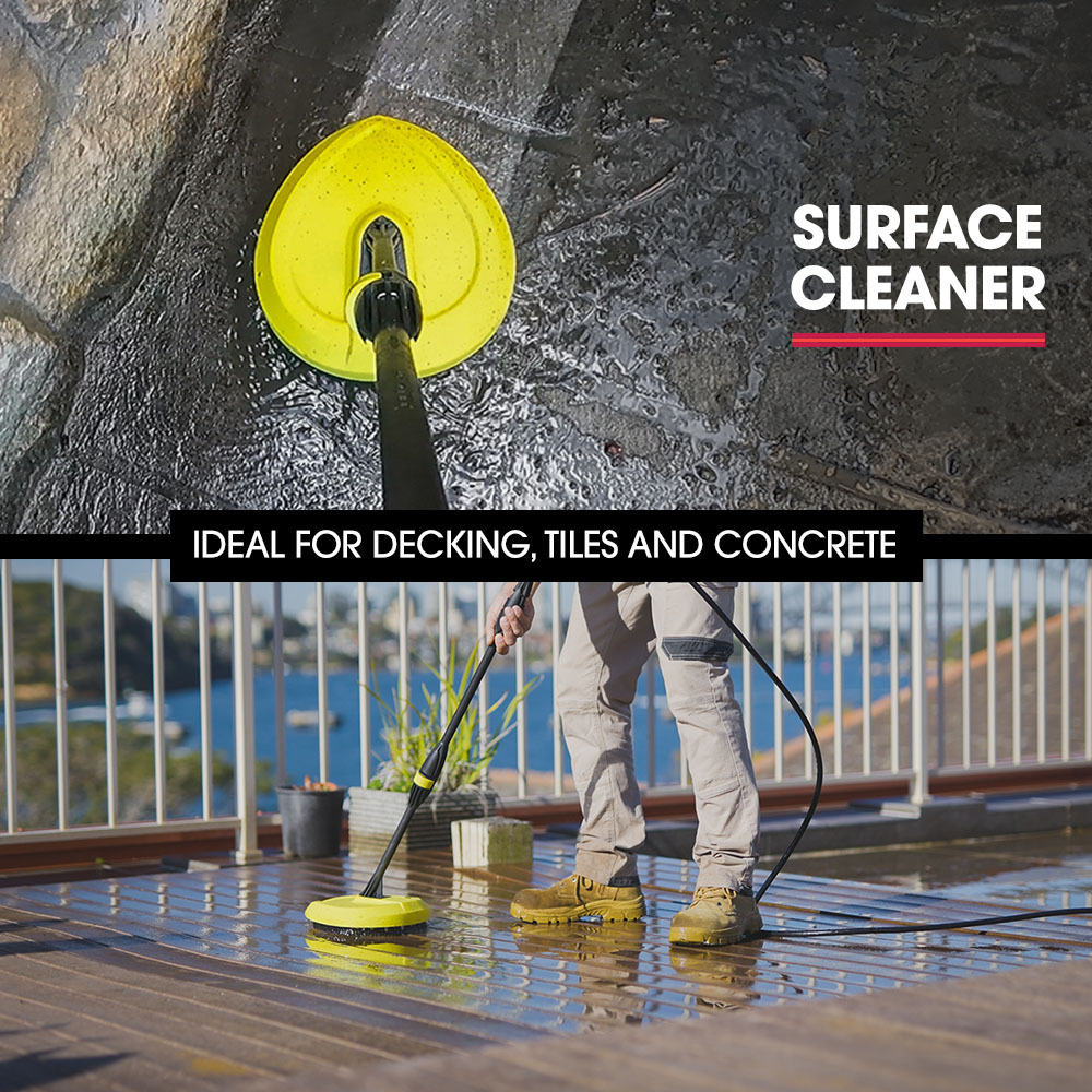 Attaching the detergent bottle and the detergent nozzle allows you to easily apply suds when cleaning cars while the rotary brush head attachment provides extra scrubbing power. The surface cleaner head is ideal for decks, paths and driveways. With a Vari-Nozzle, a Detergent Nozzle and a Turbo head, this High Pressure Washer offers versatile cleaning options to suit any task!
