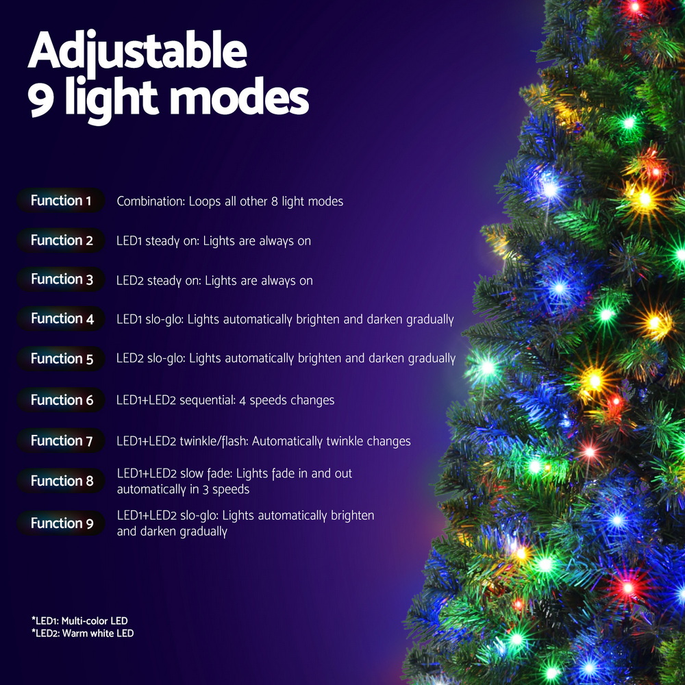Jingle Jollys 1.8M Pre-lit Christmas Tree 8 Mode Multi Colour 200 LED Light Xmas