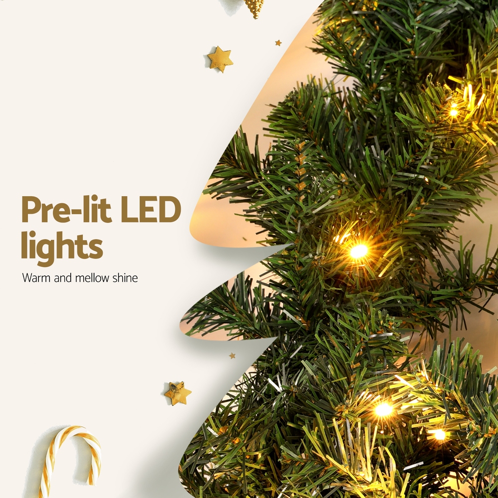 Introducing the Jingle Jollys 10m Green Prelit Garland, designed to enhance your holiday decorations with ease and elegance. Crafted from non-toxic, odour-free materials, this garland ensures a safe and pleasant environment. Adorned with warm LED light bulbs, it emits a gentle glow, perfect for creating a cosy and inviting atmosphere indoors or outdoors. Ideal for adding festive charm to mantels, staircases, or doorways, this garland combines practicality with festive flair.