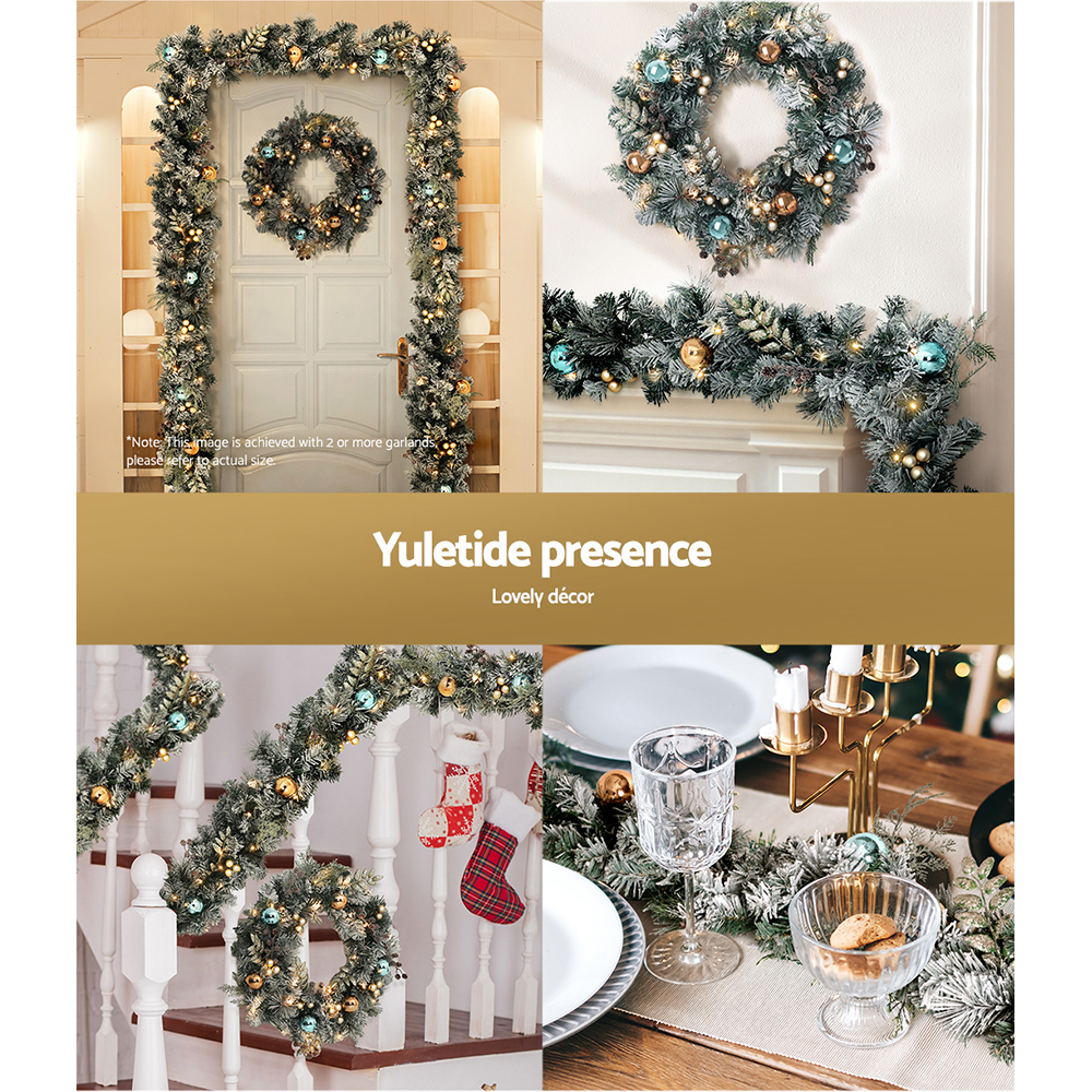 Jingle Jollys 2.7m Christmas Garland with Wreath Set LED Lights Snowy Xmas Decor