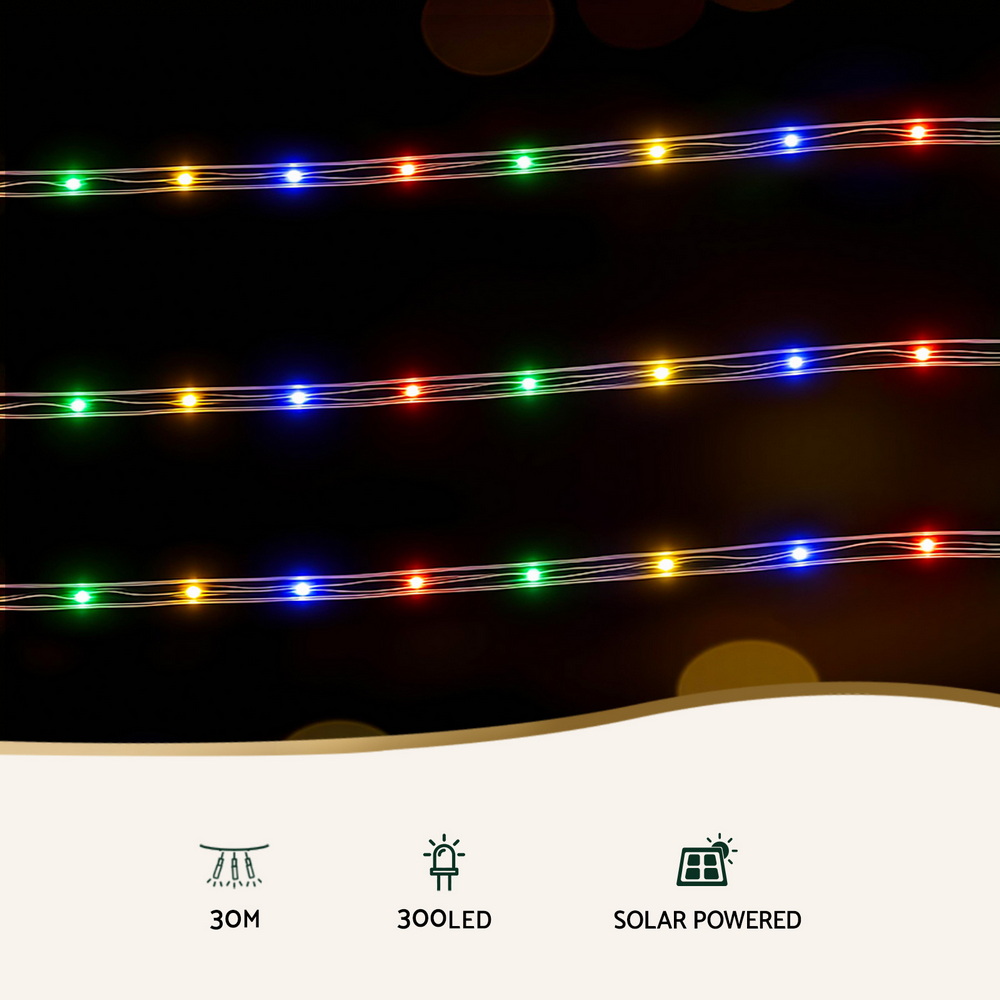 Jingle Jollys 30M Christmas Lights String Rope Light Decoration 300 LED Colorful
