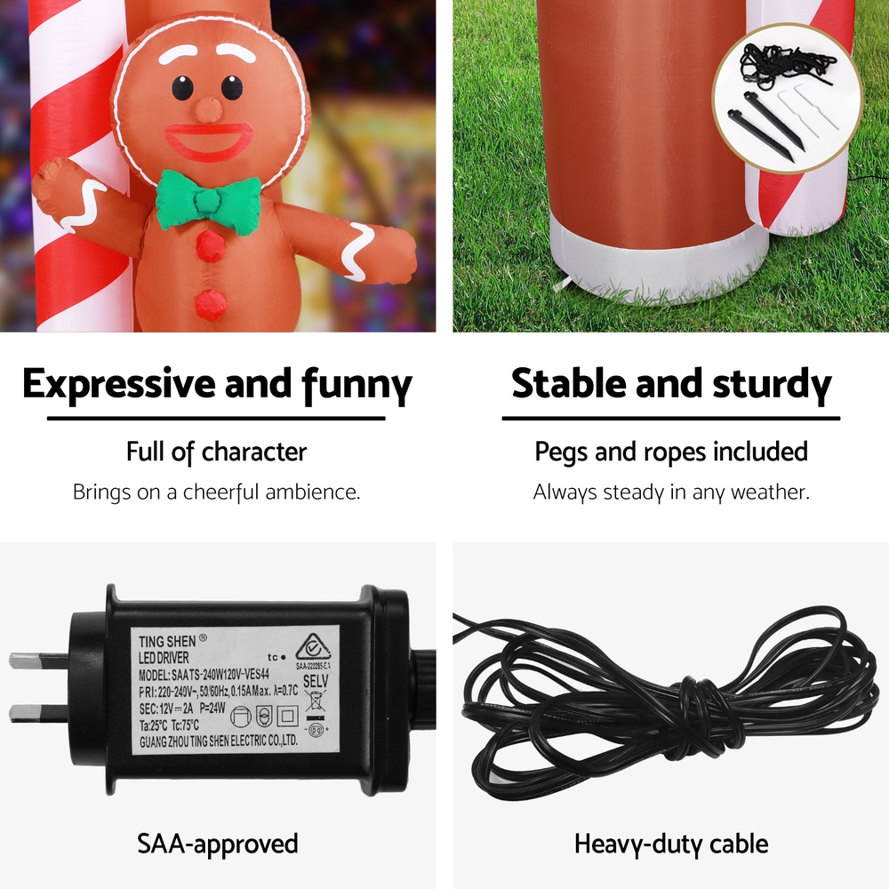 Jingle Jollys Christmas Inflatable Archwary Ginger 2.8M Illuminated Decorations