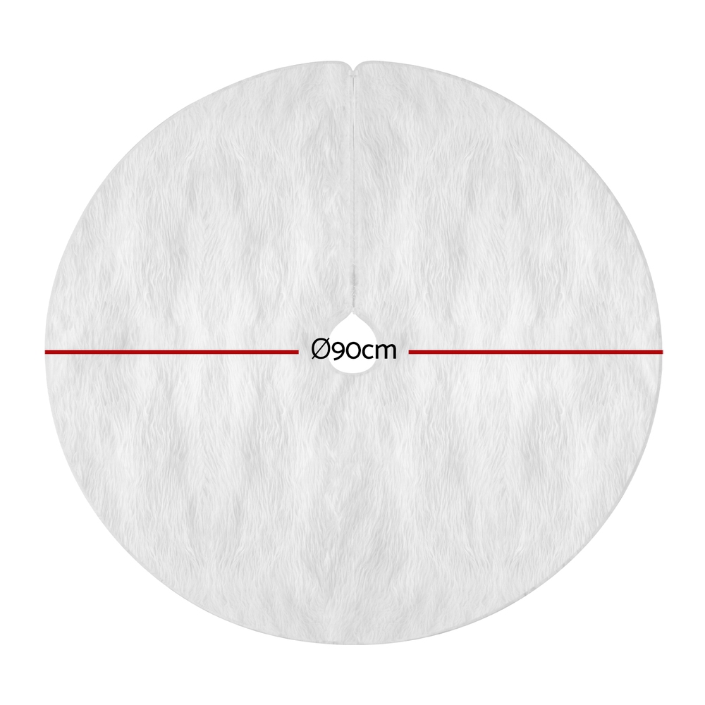 Jingle Jollys Christmas Tree Skirt 90cm Plush Xmas Fluffy Ornaments Decor White