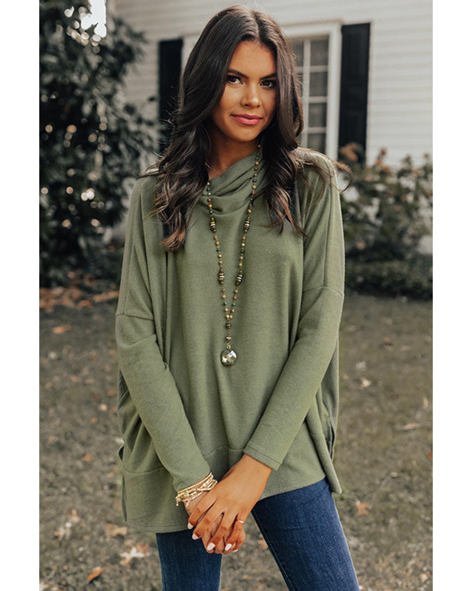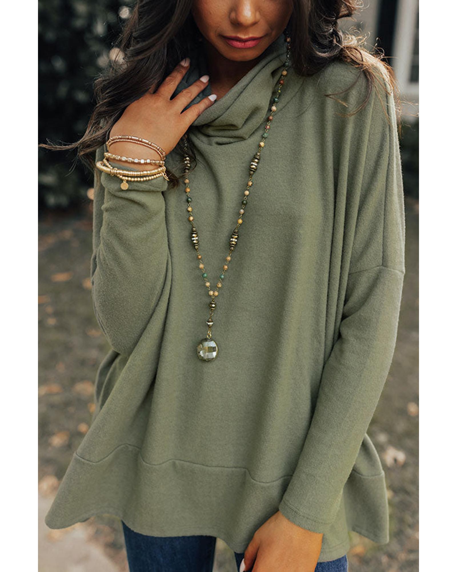 Jungle Green Cowl Neck Shift Tunic Top – M