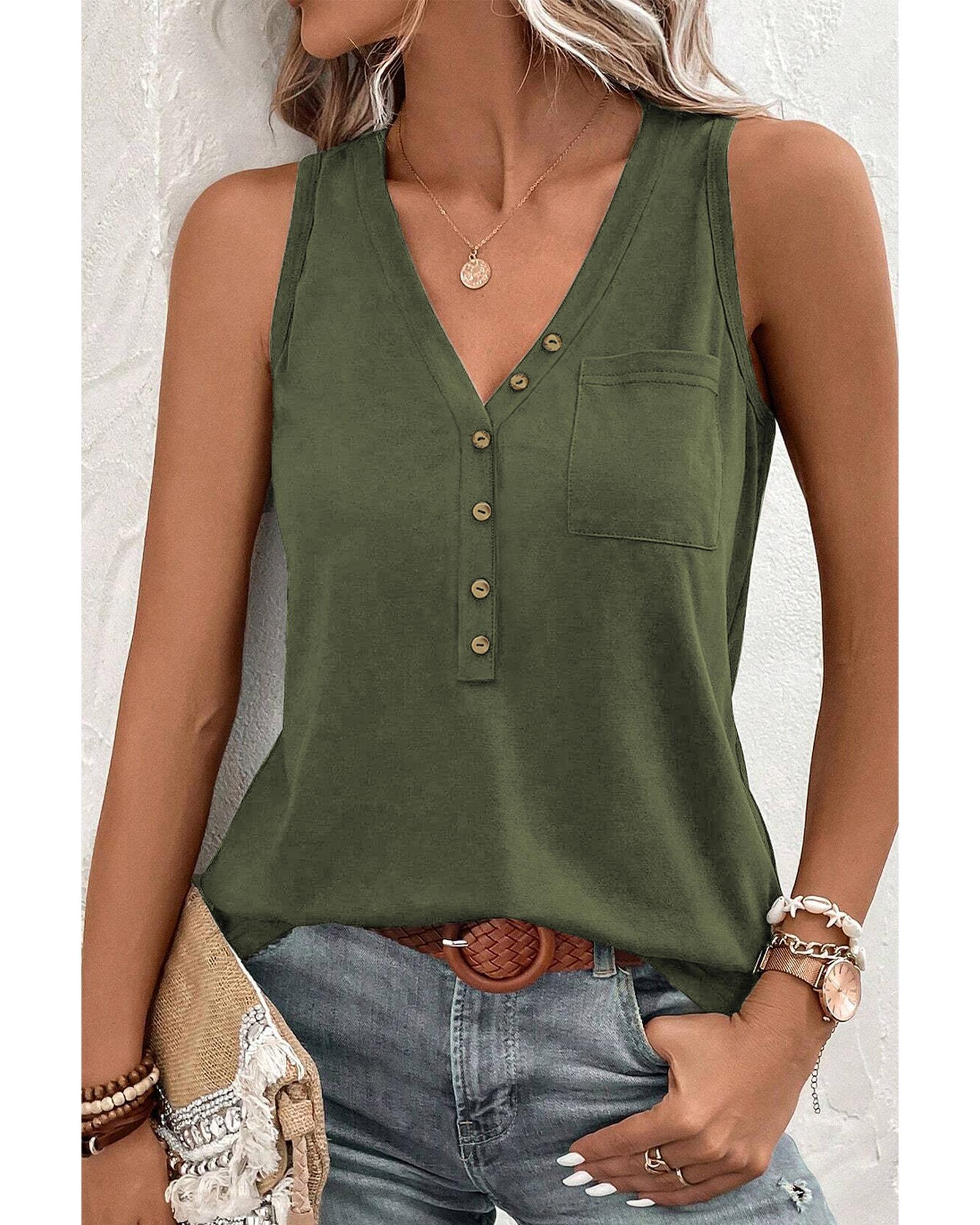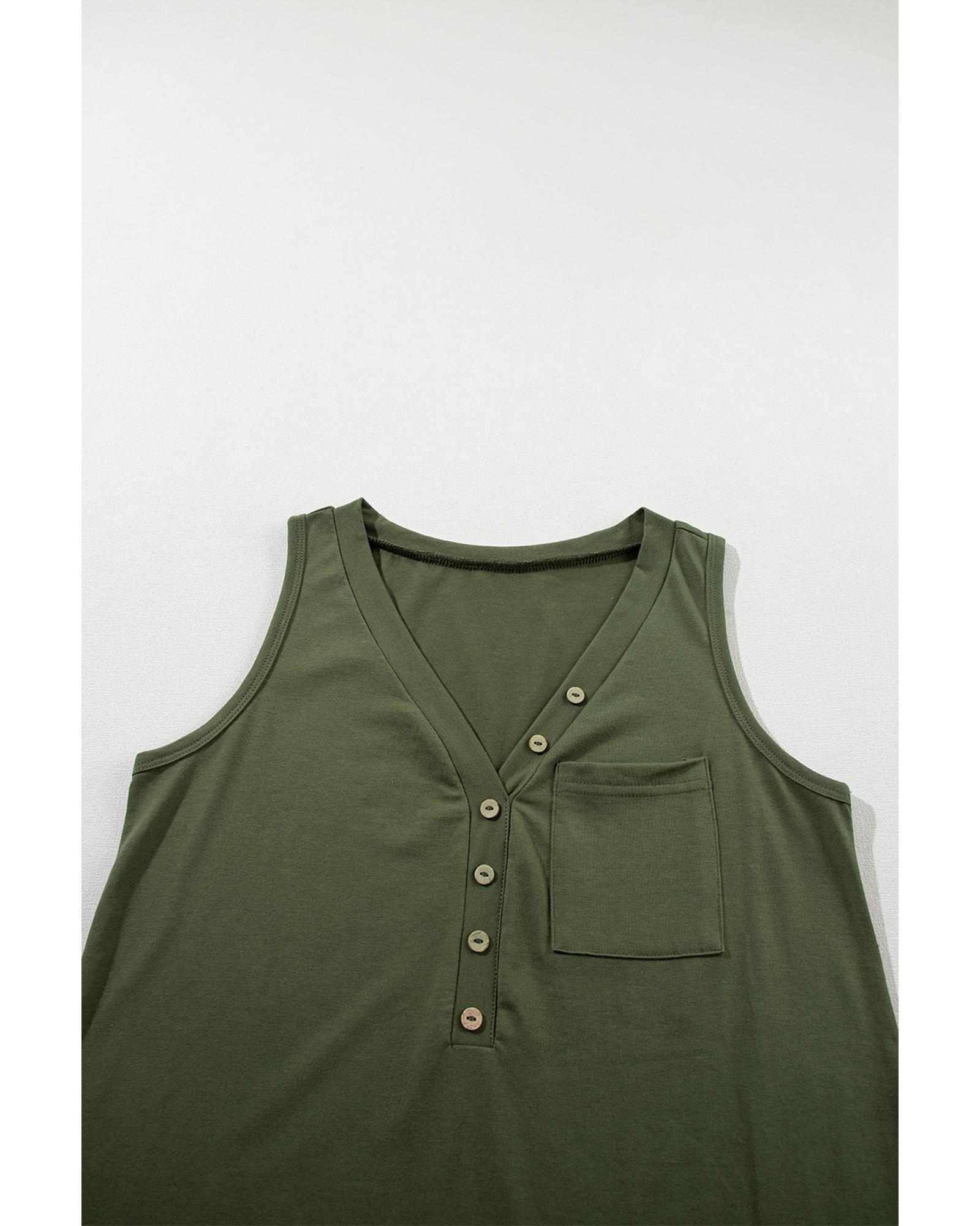 Jungle Green Half Button V Neck Patched Pocket Tank Top – S