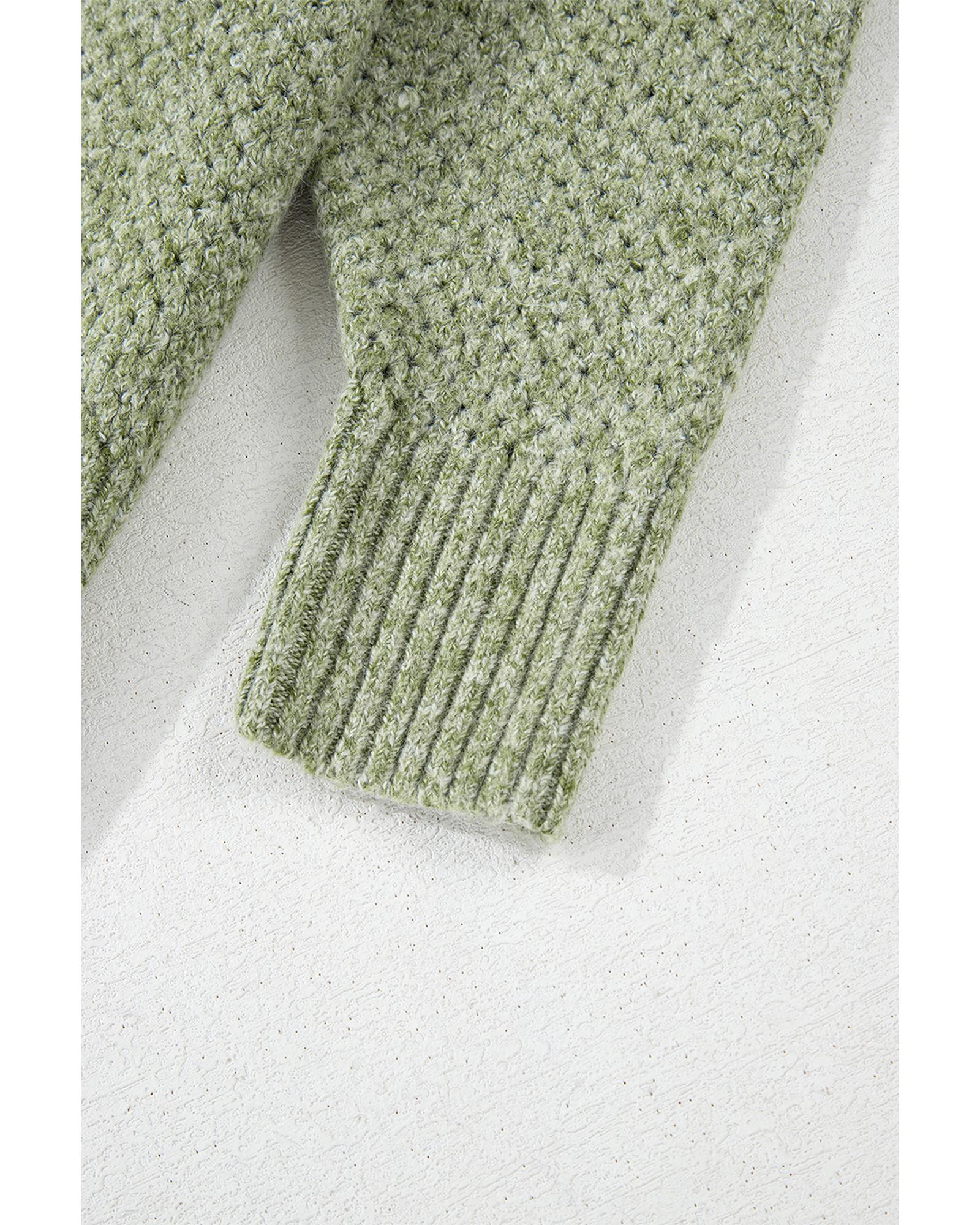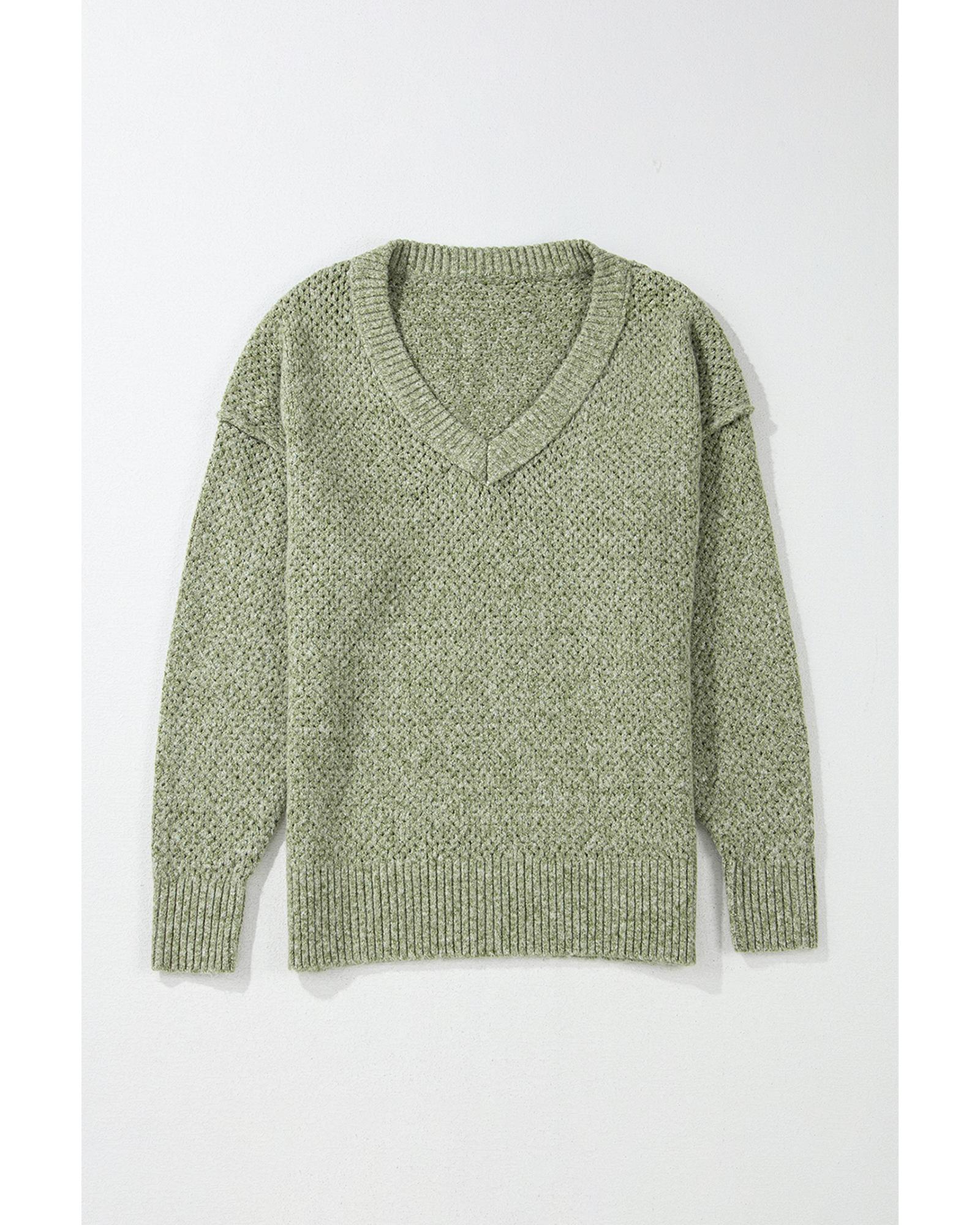 Jungle Green Loose Eyelet V Neck Drop Shoulder Sweater – XL