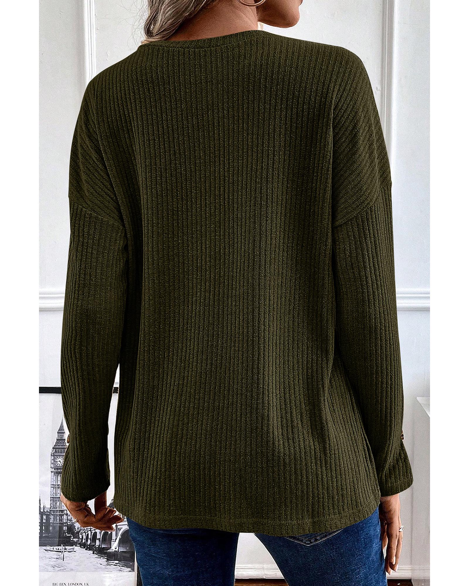 Jungle Green Rib Textured Henley Knit Top – M