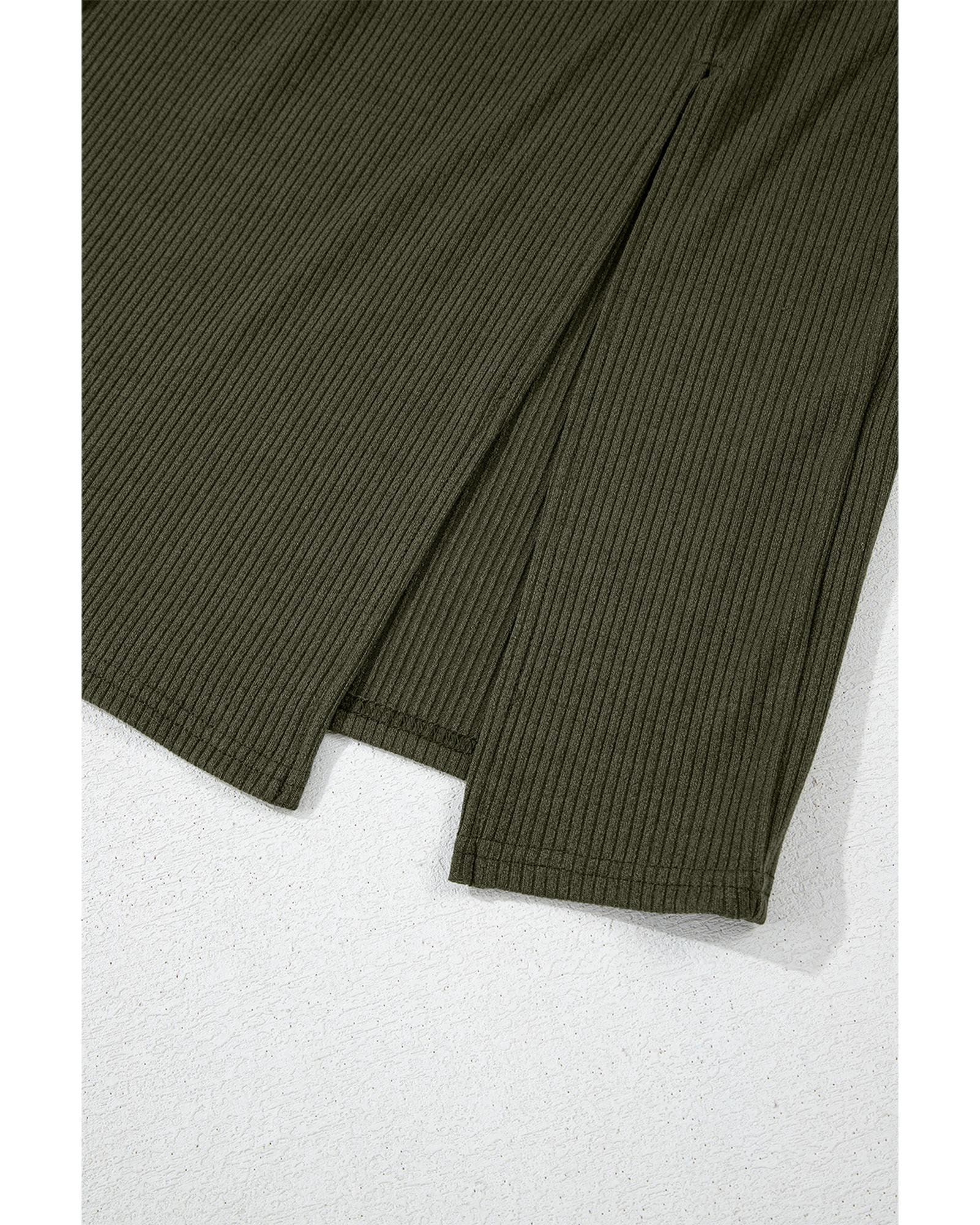 Jungle Green Ribbed Side Slit Ruched Slim Fit Long Sleeve Mini Dress – L