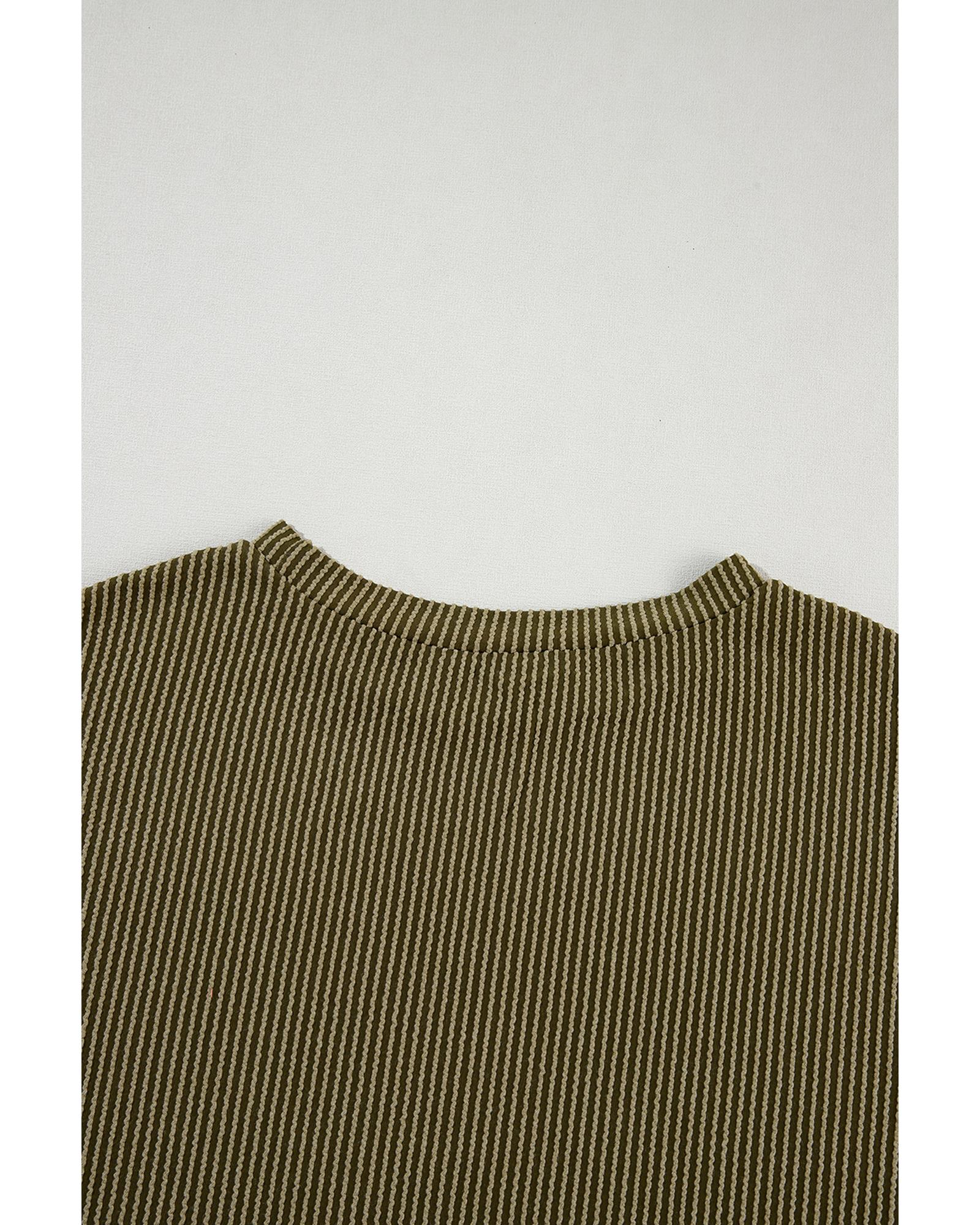 Jungle Green Ribbed Textured Knit Loose Fit Tee and Shorts Set – L