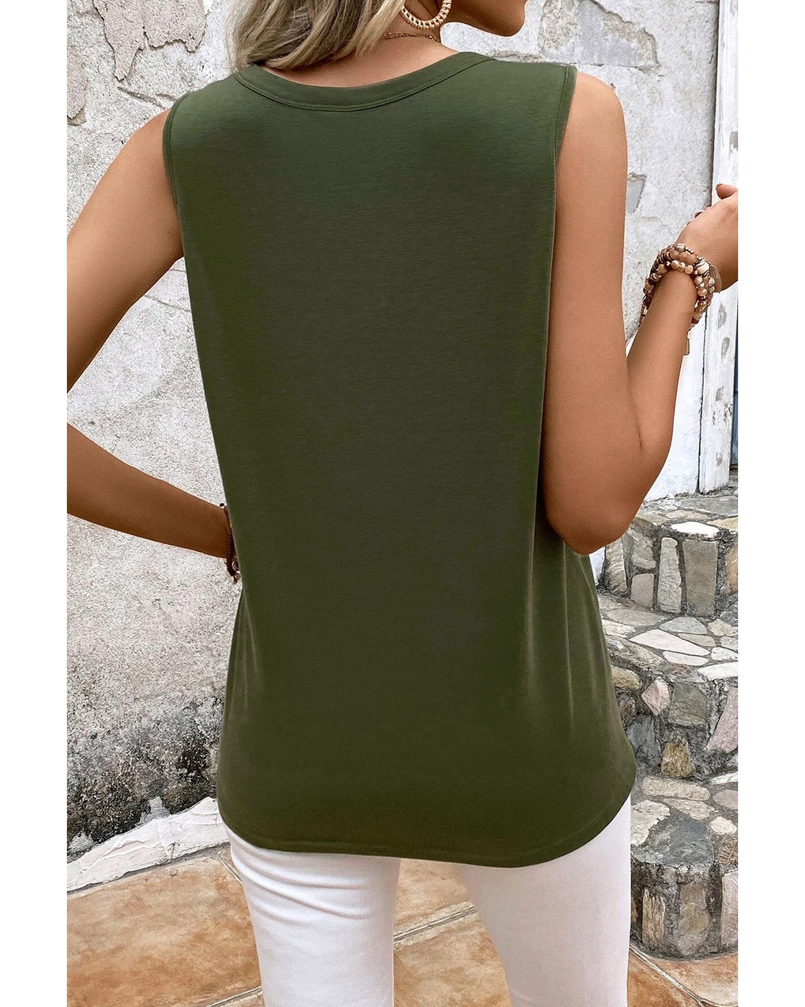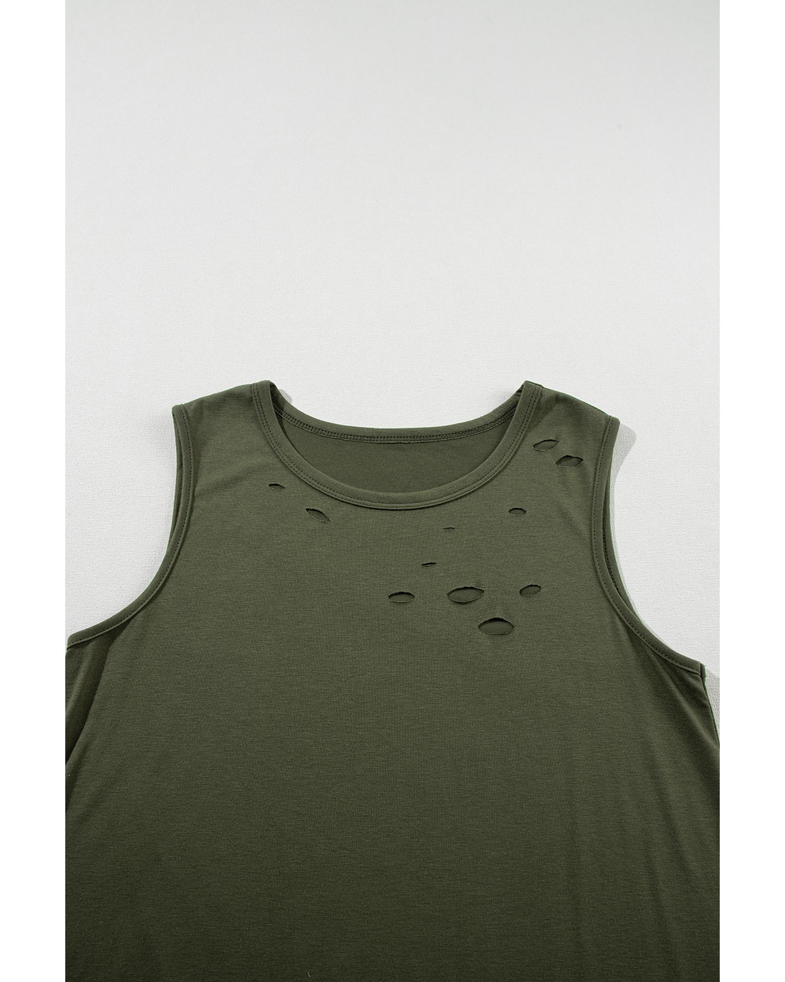 Jungle Green Solid Color Distressed Holes Crew Neck Tank Top – L