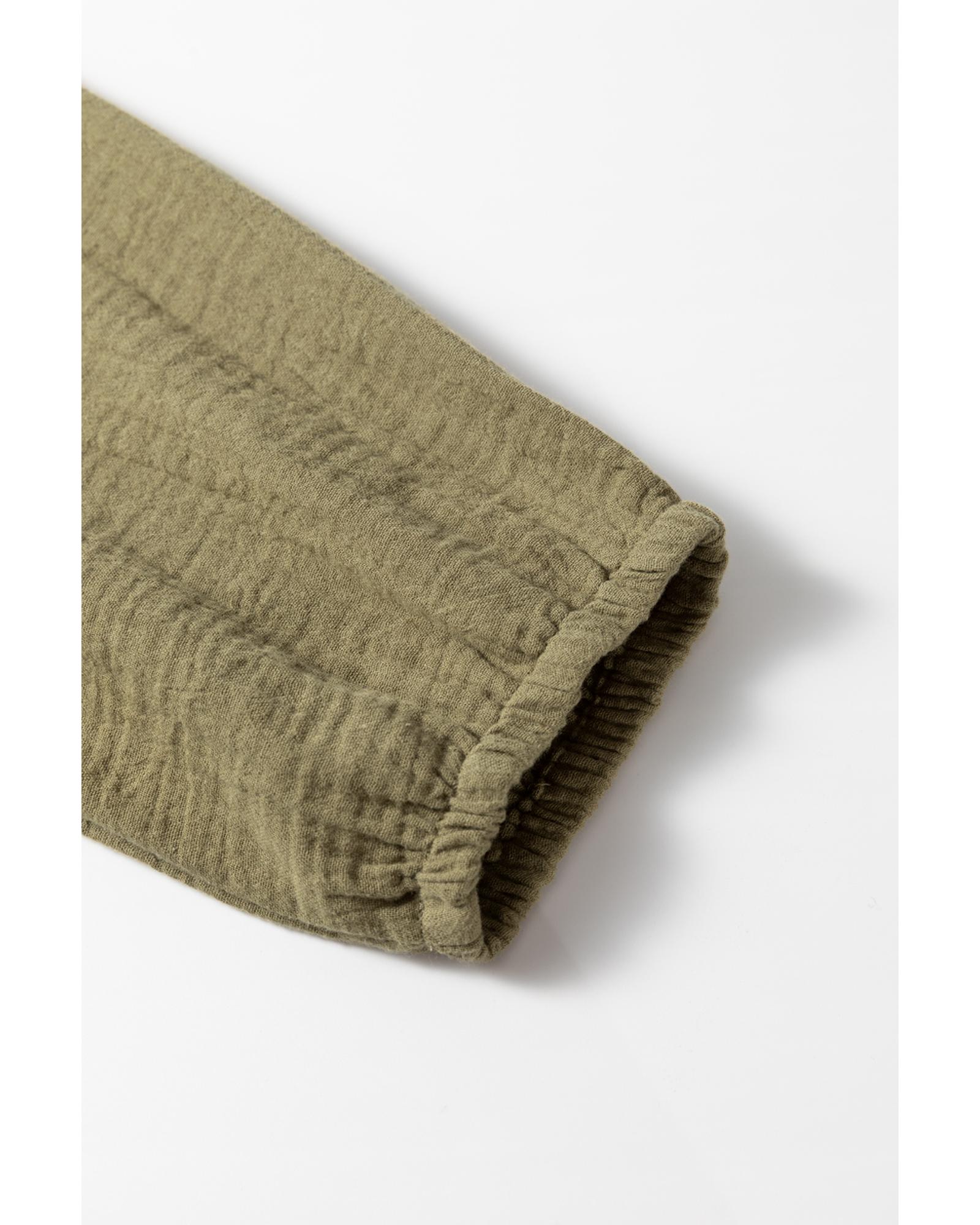 Jungle Green Textured Bracelet Sleeve Collared Button Up Dual Tied Mini Dress – M