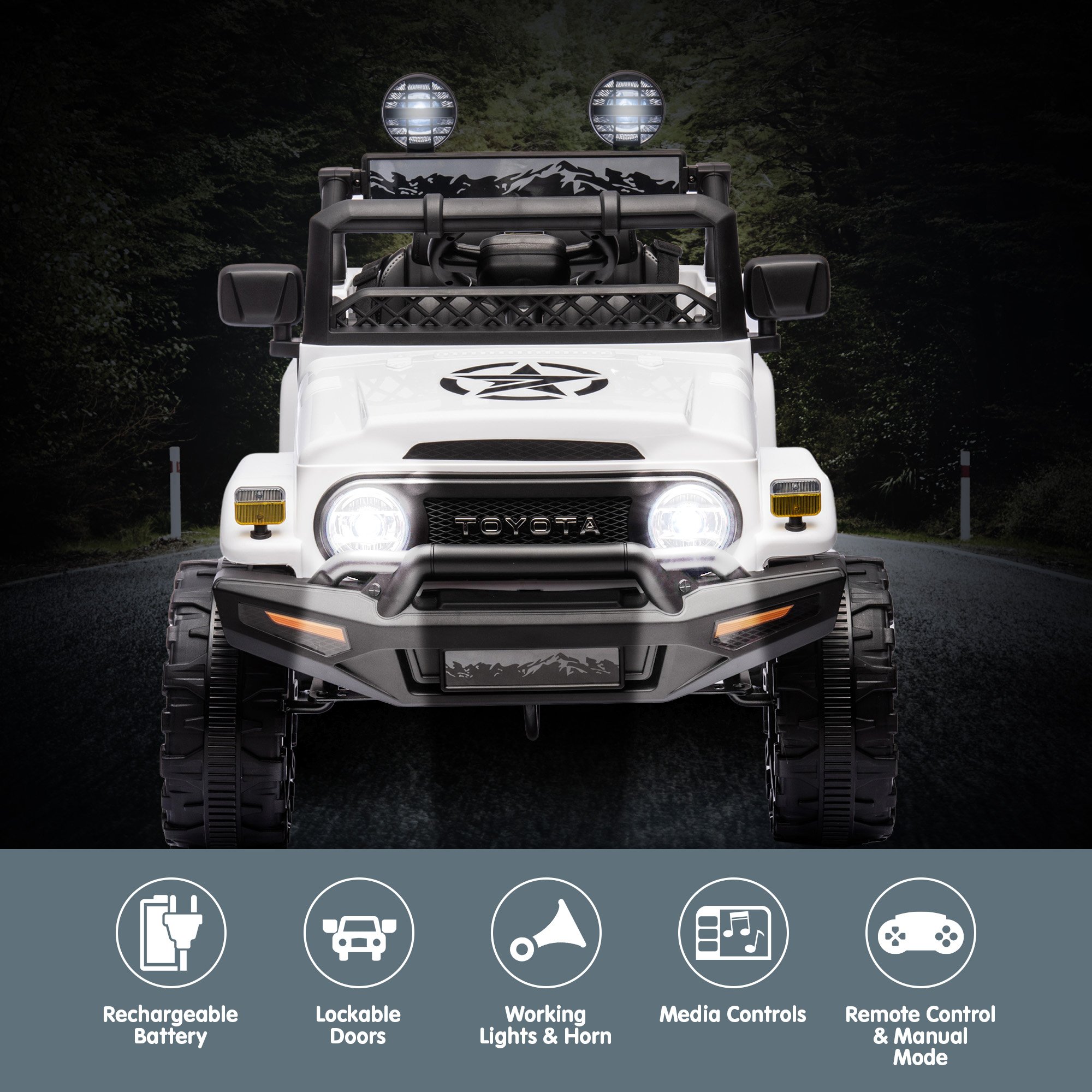 - Working spotlights (separate battery required)