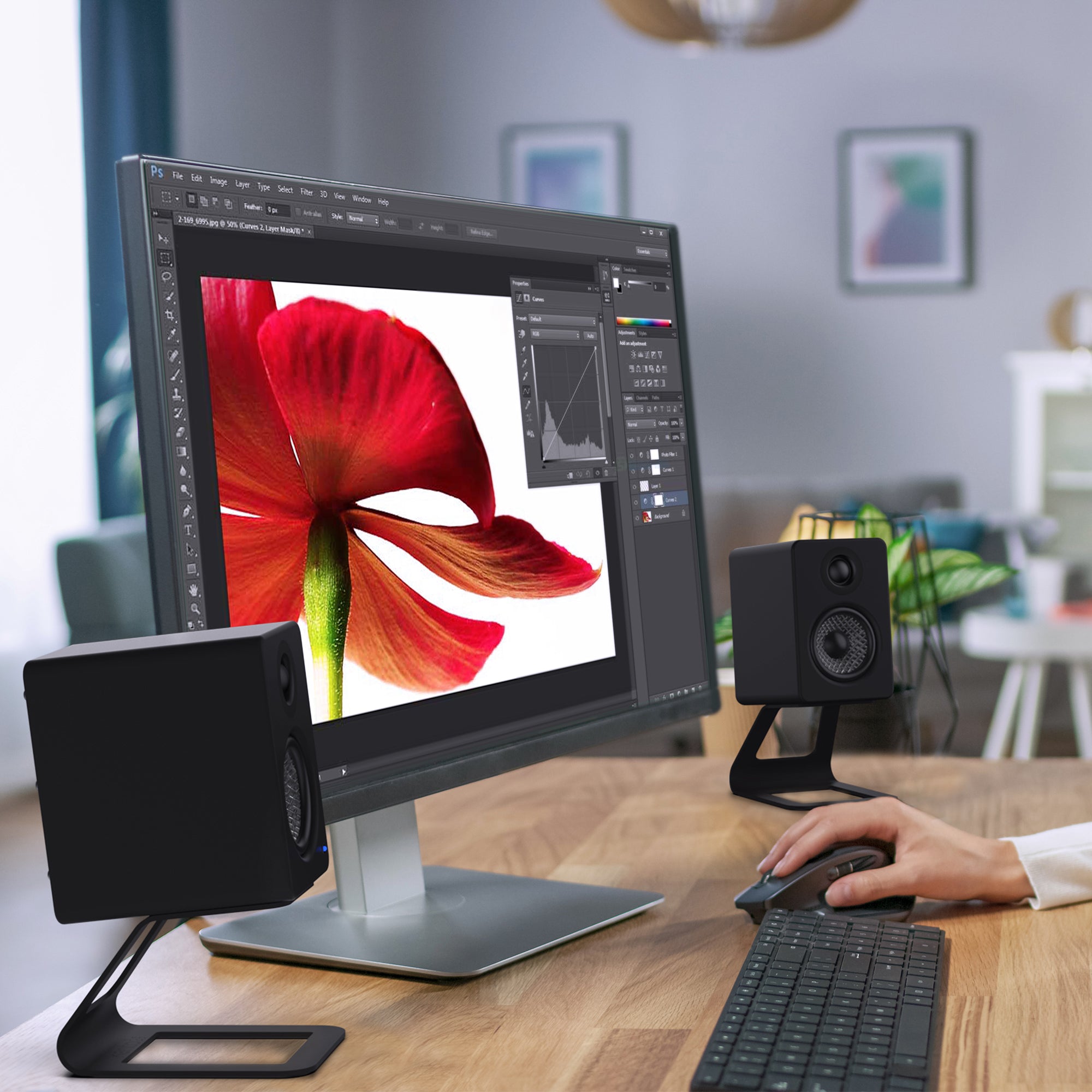 Kanto SE2 Elevated Desktop Speaker Stands for Small Speakers – Pair, Black