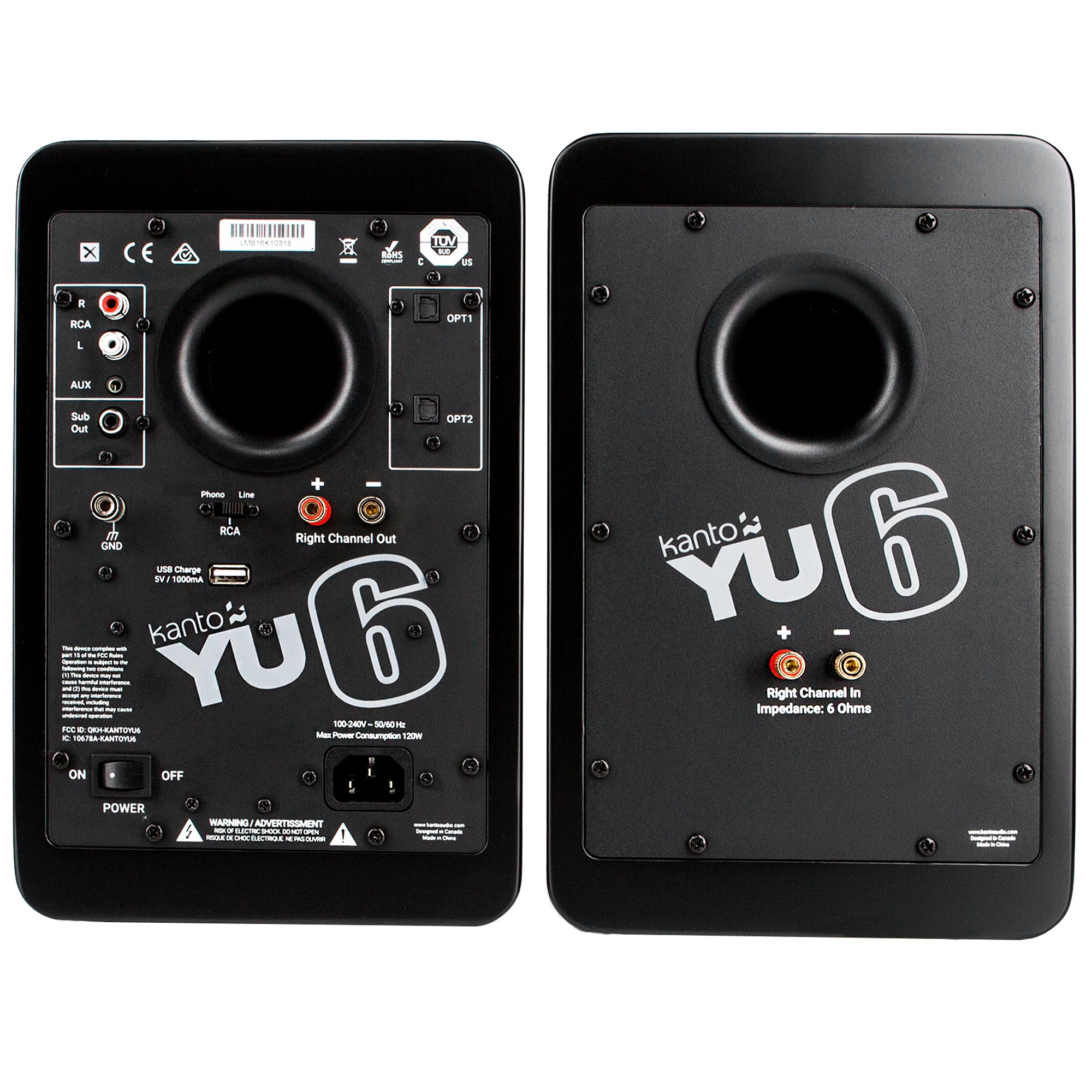 Kanto YU6 200W Powered Bookshelf Speakers with Bluetooth and Phono Preamp – Pair, Matte Black – Undeniably loud. Satisfy your craving for powerful, full-impact sound with YU6. Armed with a formidable Class D amplifier pumping out 200W peak power, YU6 will have you questioning what it really means to be loud. Its 5.25” Kevlar drivers and 1” silk dome tweeters inject detailed sound into every square inch of living space, evoking emotions that can only be expressed with an ear-to-ear grin. A built-in phono preamp makes it easy to spin your favourite tunes, while Bluetooth® connectivity lets you keep the party going from the palm of your hand.