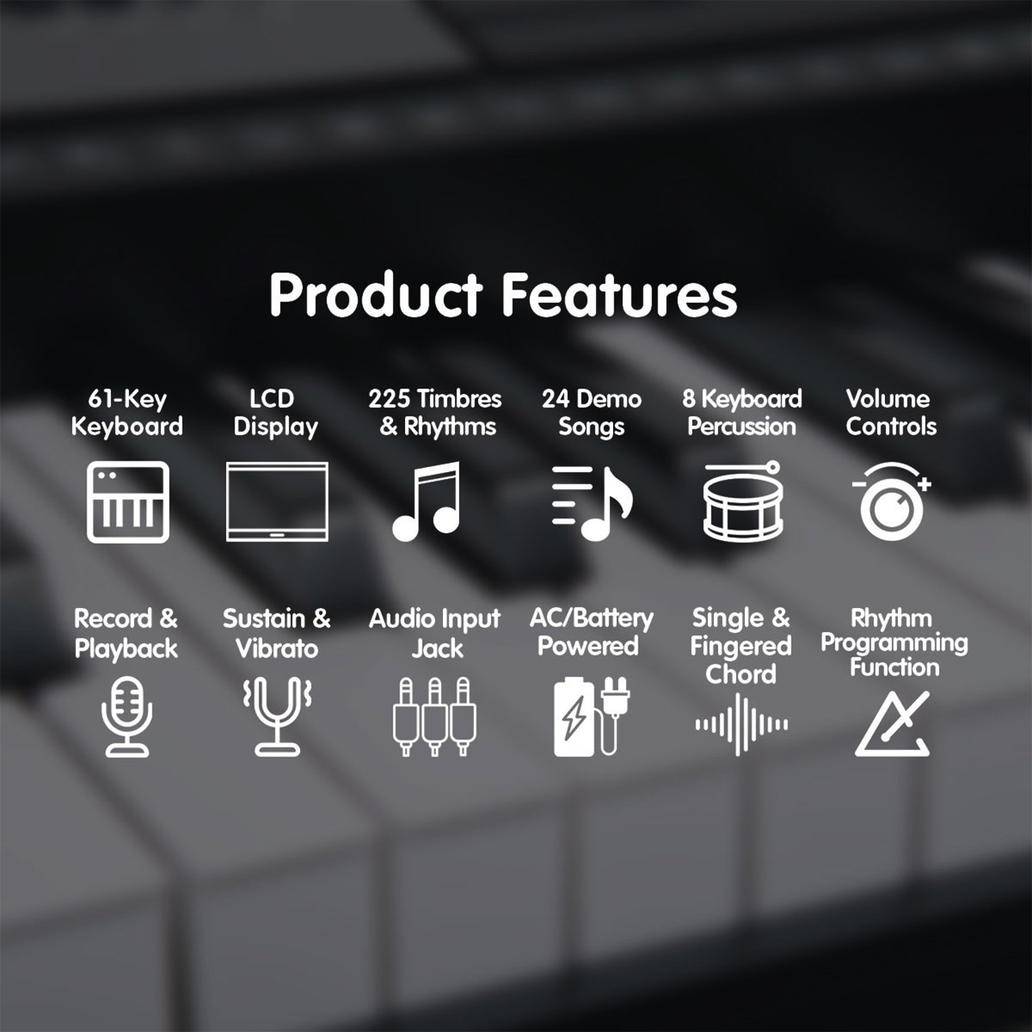 Whether you are a beginner looking for the ideal first keyboard, or an intermediate user seeking to sharpen your skill set, this 61-key electronic piano keyboard provides the perfect combination of professional-grade features and user-friendly design.