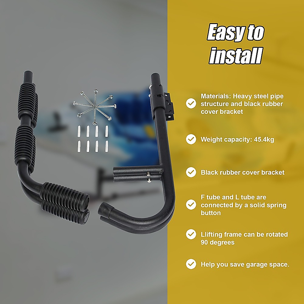 - The lifting frame can be rotated 90 degrees, so items will block the way when not in use. After being easily folded, you can even remove the extended arm. Help you save garage space.