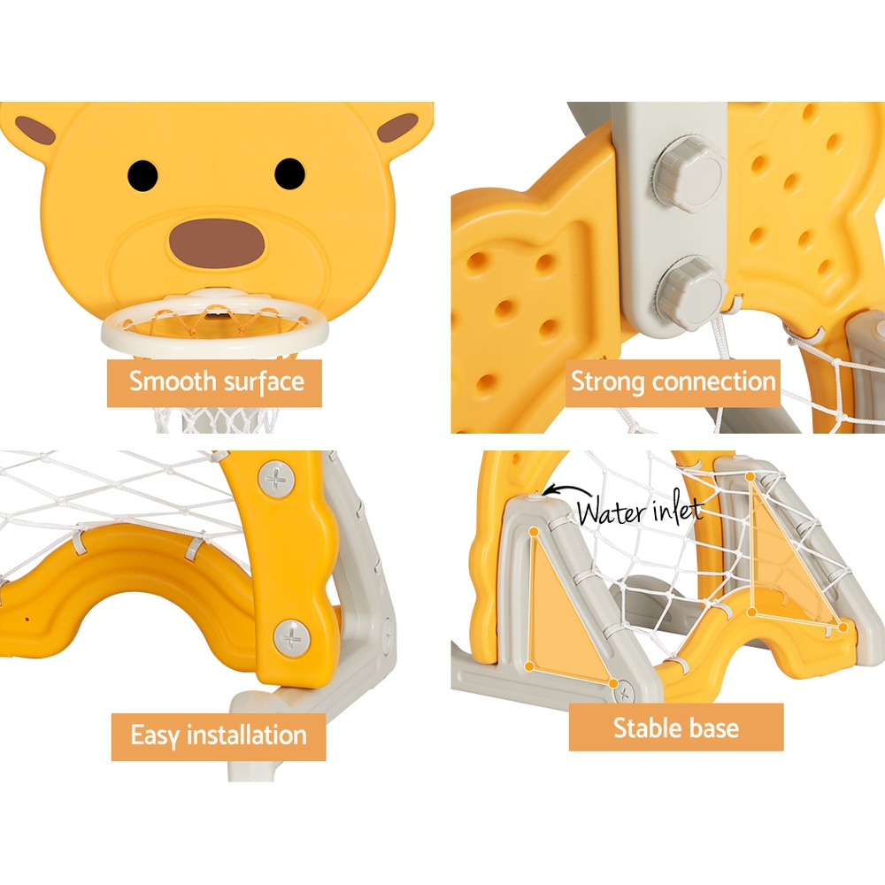 Keezi Kids Basketball Hoop Stand Adjustable 5-in-1 Sports Center Toys Set Yellow