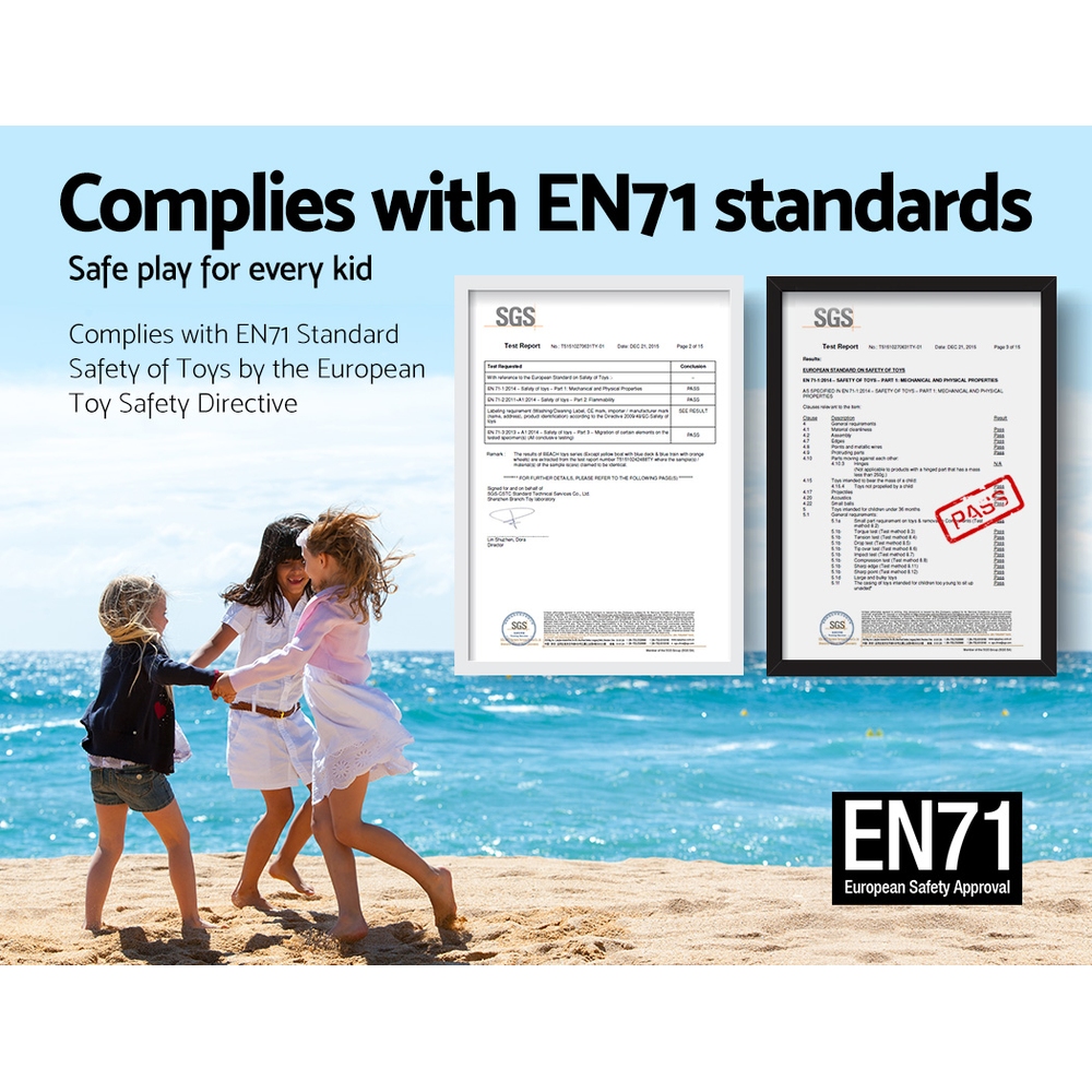 If your kids love getting creative, you’ll love the Keezi Kids Activity Table. It may look like a simple table, but with a powder-coated steel frame and high-quality HDPE plastic exterior, the table is built for heavy-duty, long-lasting use. The table is coated with rust-resistant paint, features upgraded rounded corners for safety, and has a 100kg weight capacity to hold everything your child needs. Adjustable feet ensure the table is always the perfect height for your children to play, draw, read, write or craft. You can easily use the table indoors or outdoors whatever the day requires. Best of all, the table is EN71 European Safety of Toys certified, so you can rest assured you made the right choice for your children. No matter the activity, the Keezi Kids Activity Table is ready for action.