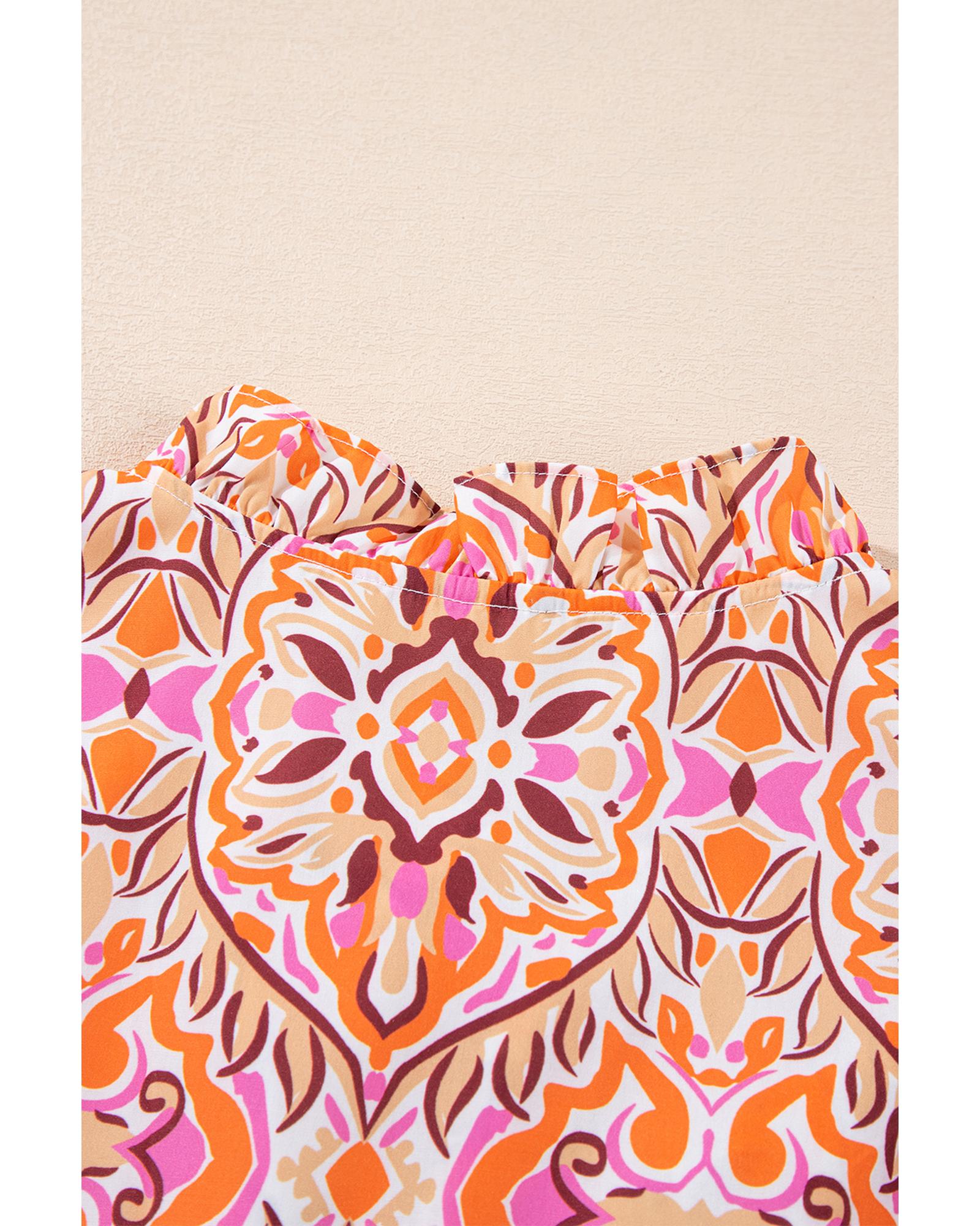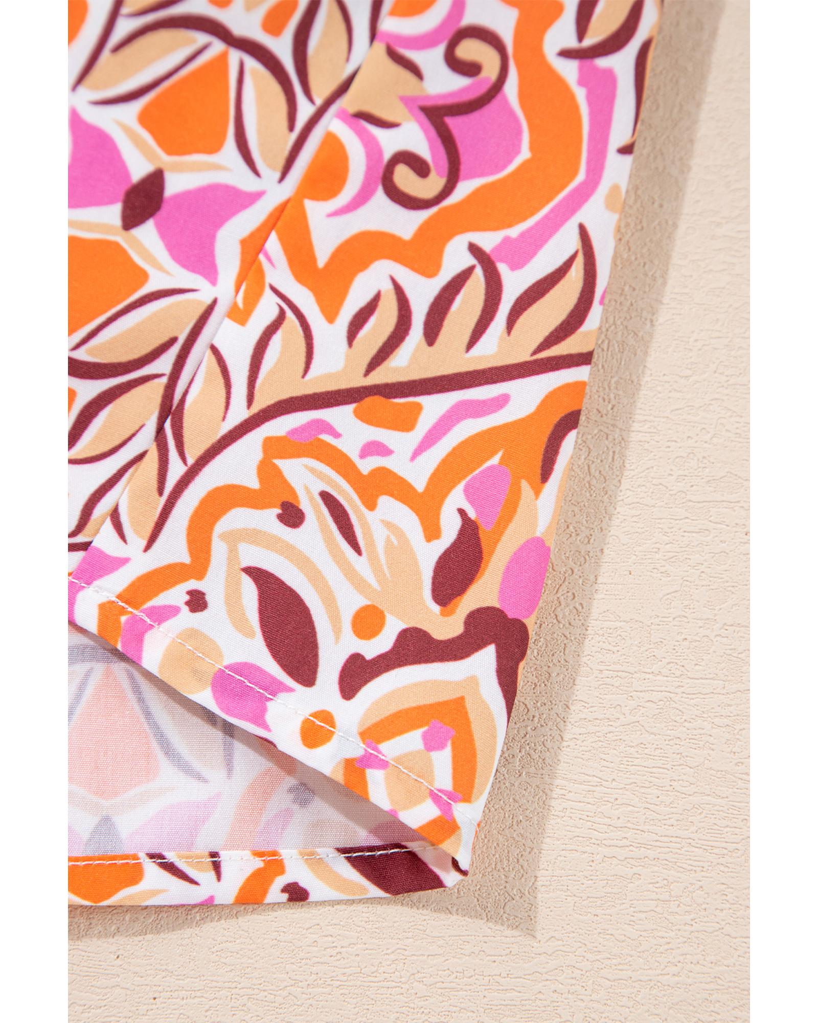 Pink Abstract Printed Flutter Sleeve Daring Cutout Long Dress - XL