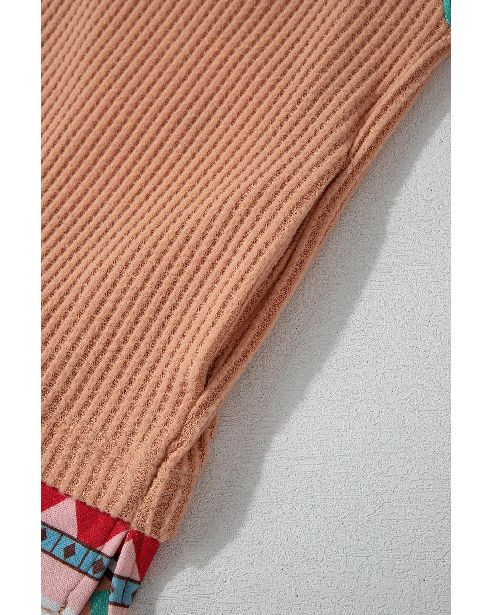 Khaki Aztec Patchwork Waffle Knit Plus Size Hoodie – 4X