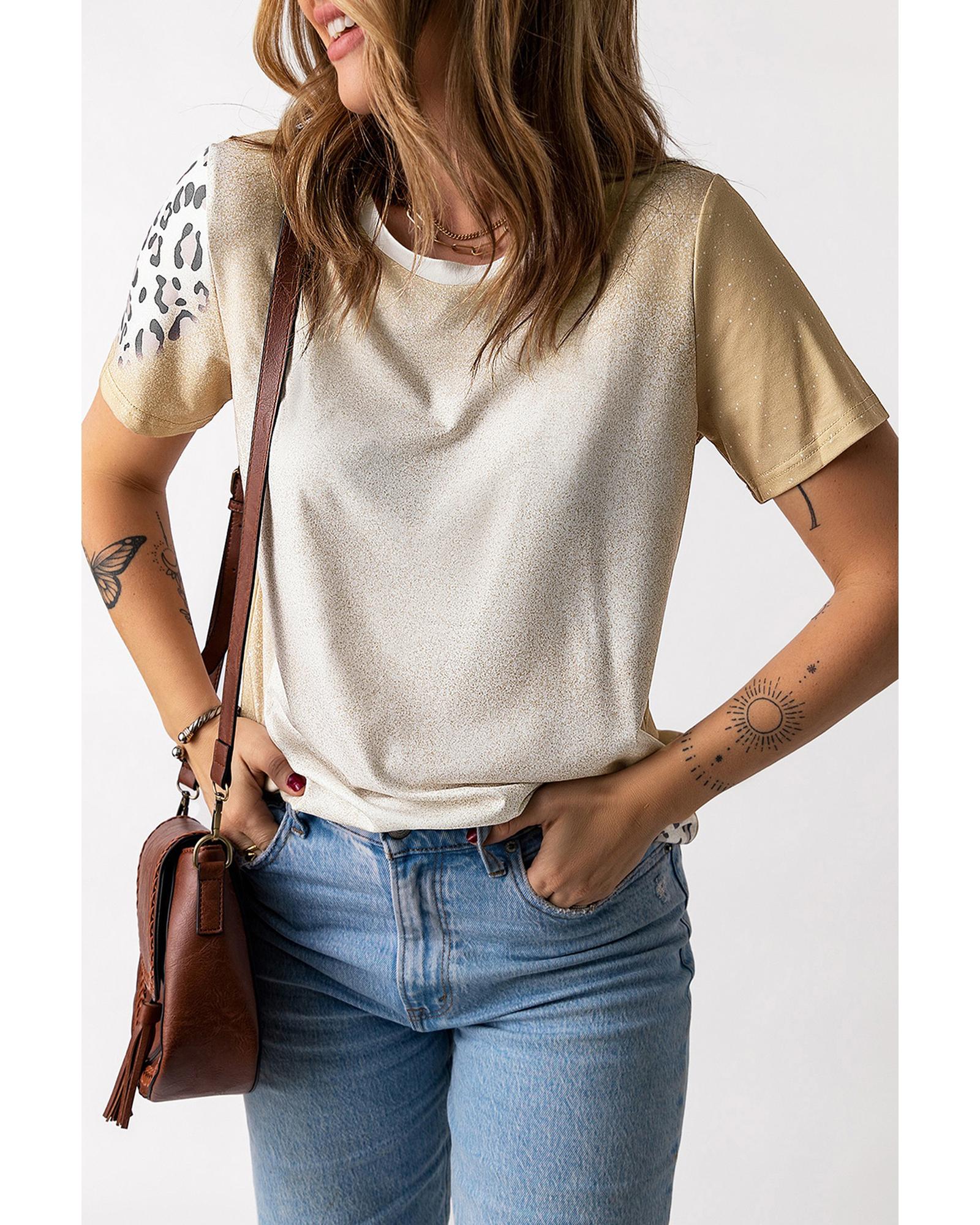 Khaki Bleached Leopard Print Crew Neck T Shirt – M