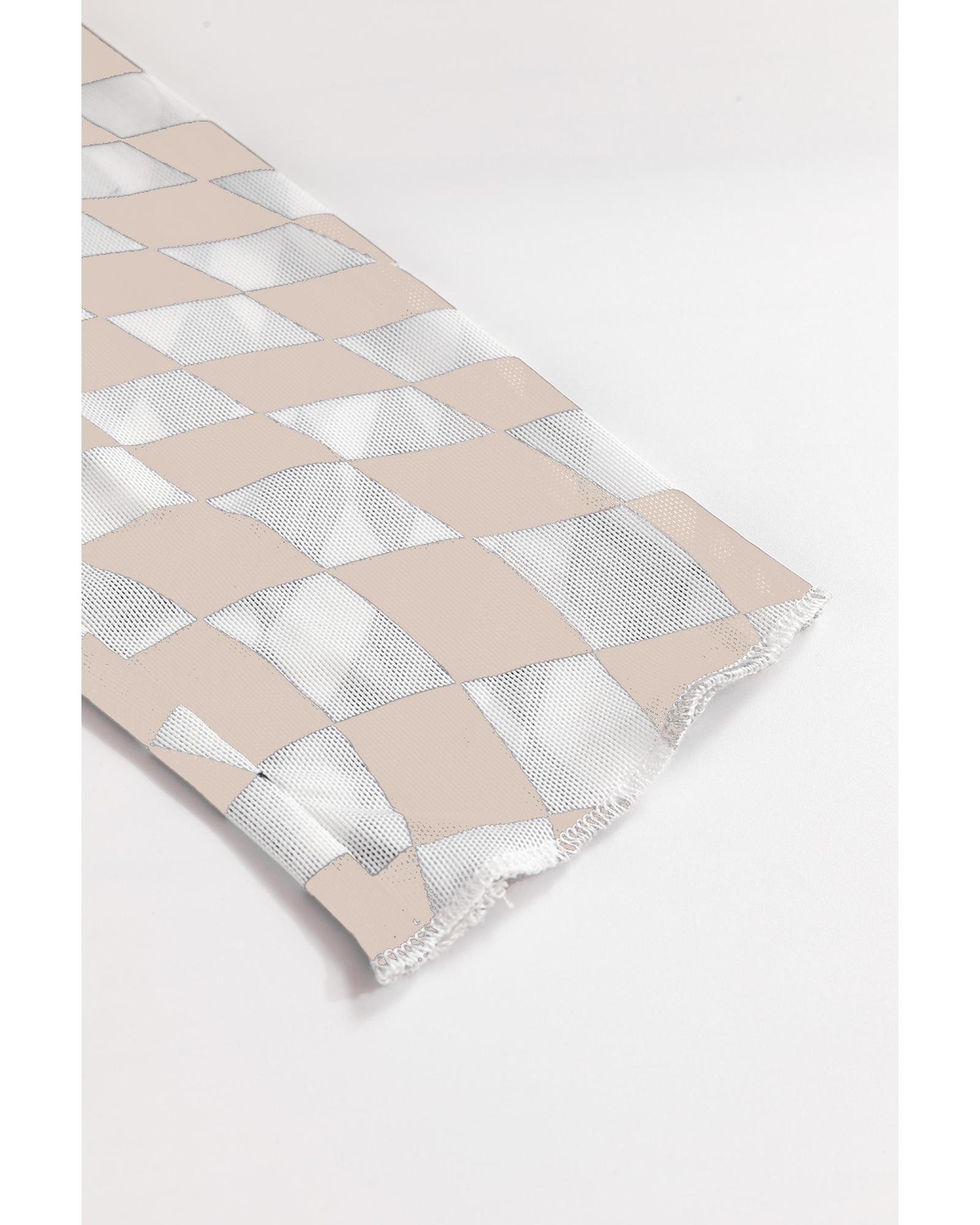 Khaki Checkered Pattern Mesh Mock Neck Long Sleeve Top – M