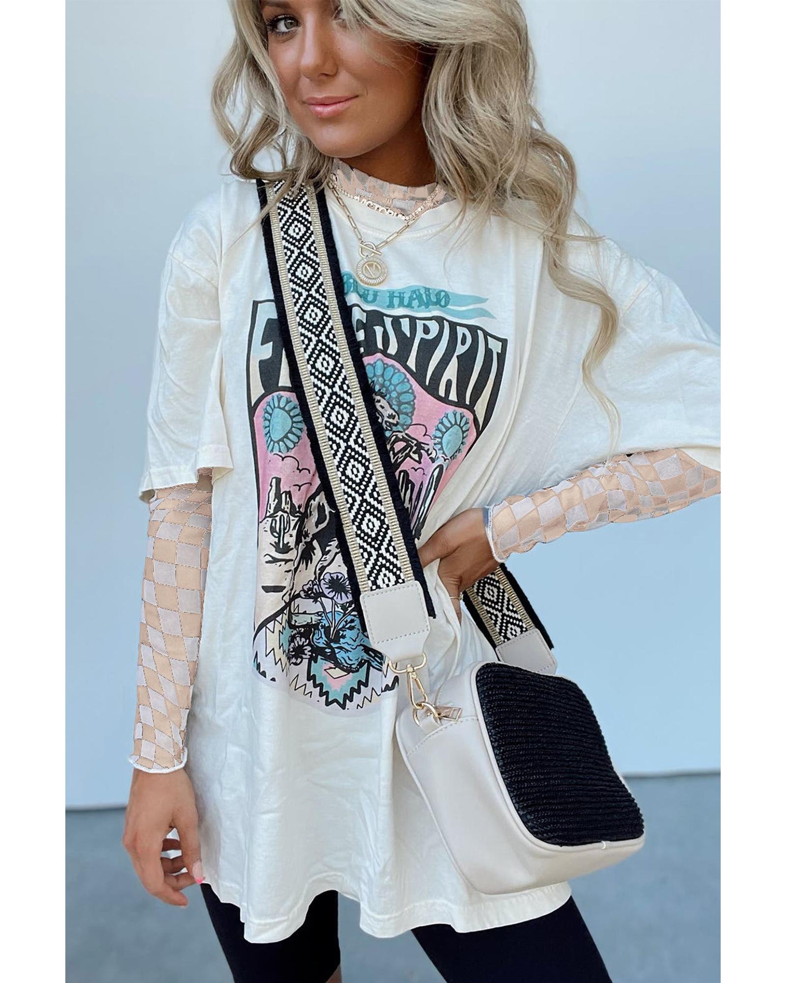 White Colored Light Bowknot Graphic Crewneck T Shirt - 2XL
