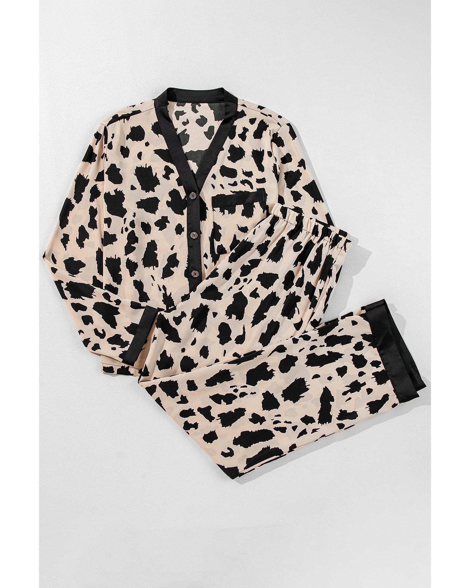 Khaki Cheetah Contrast Trim Loose Fit Two Piece Sleepwear – XL