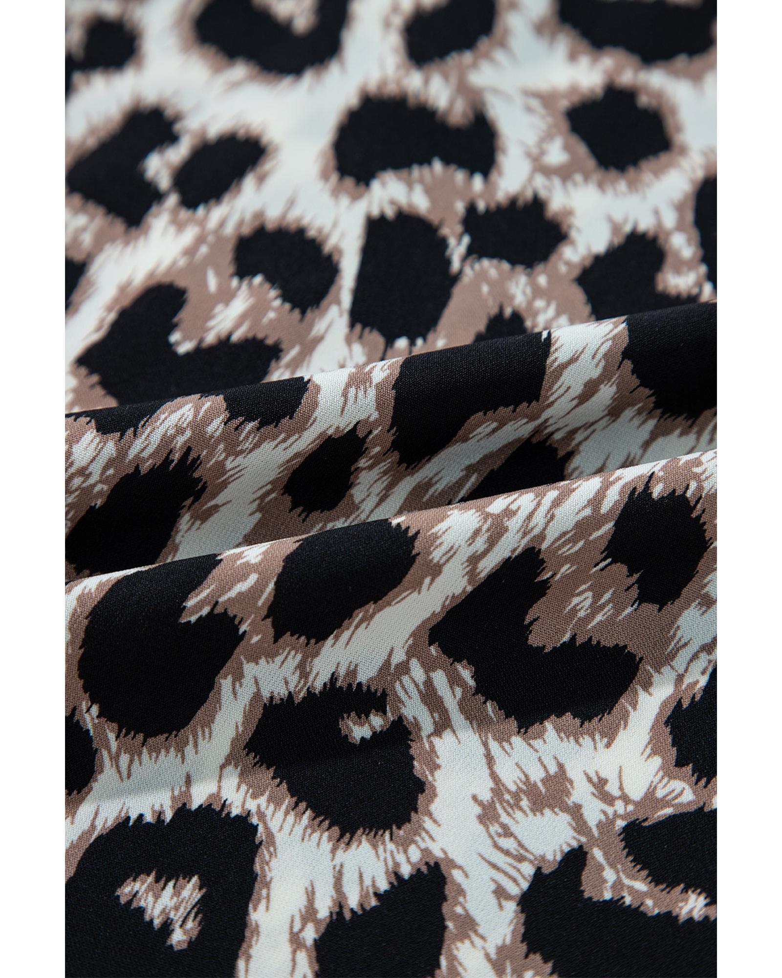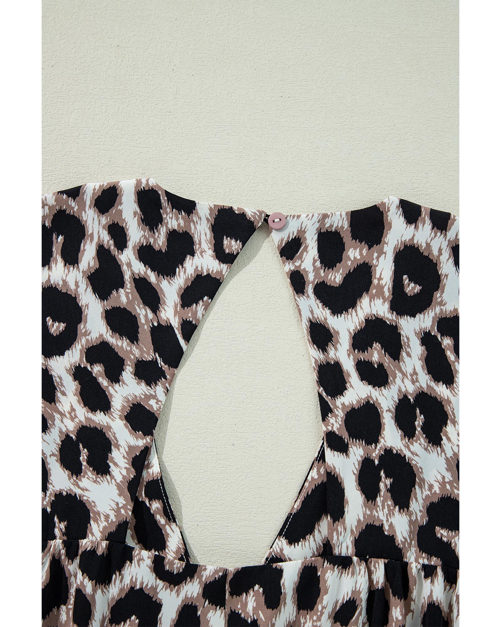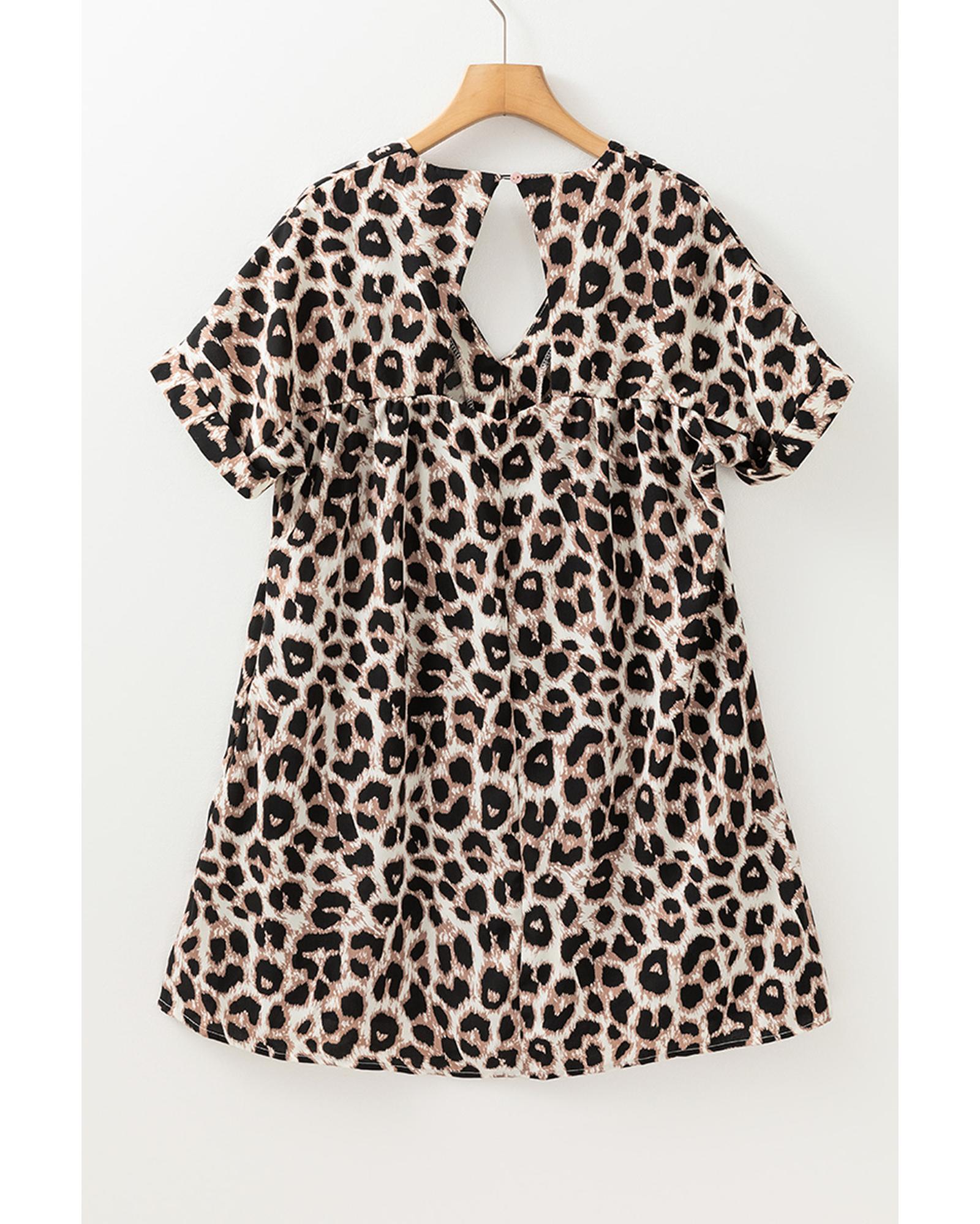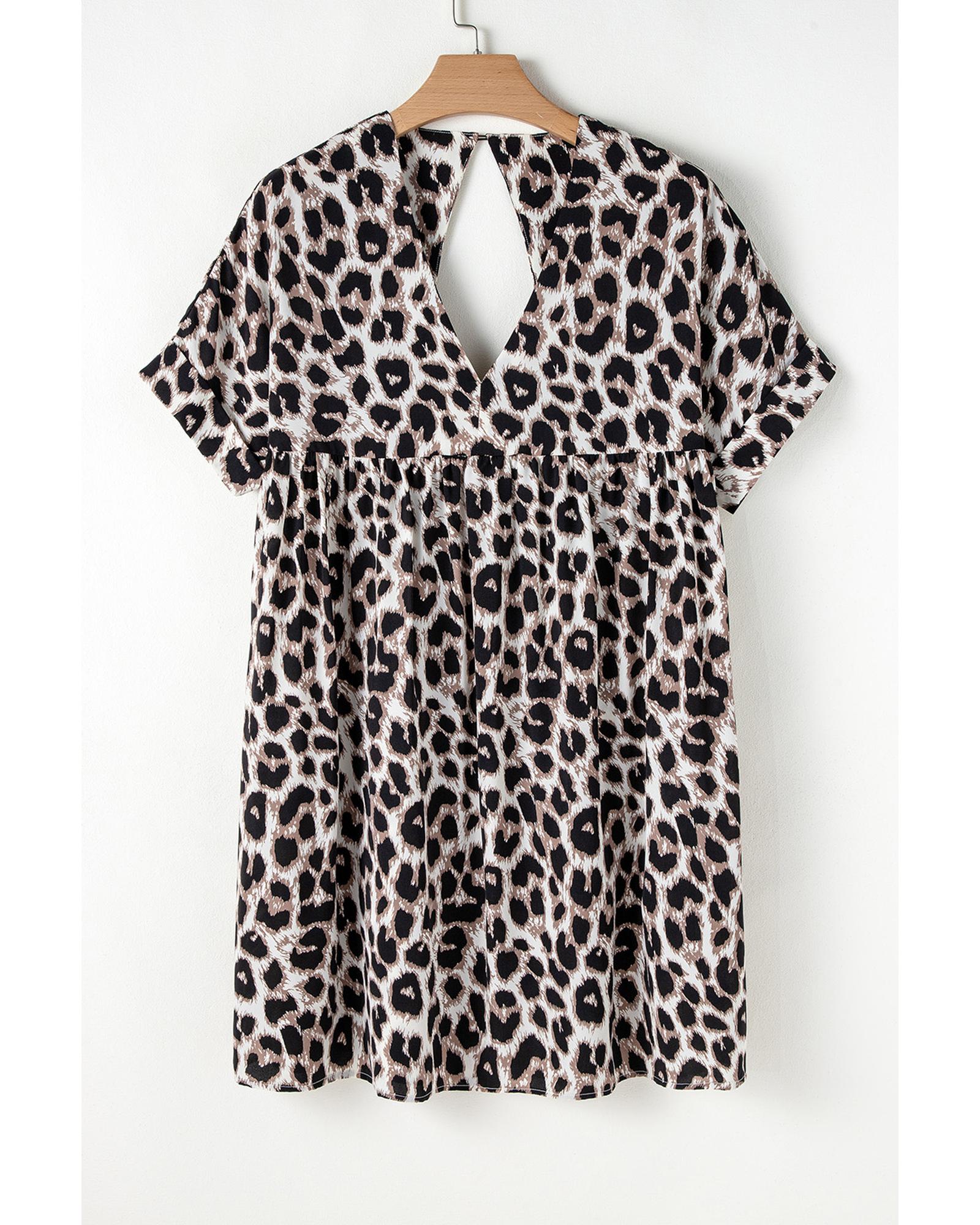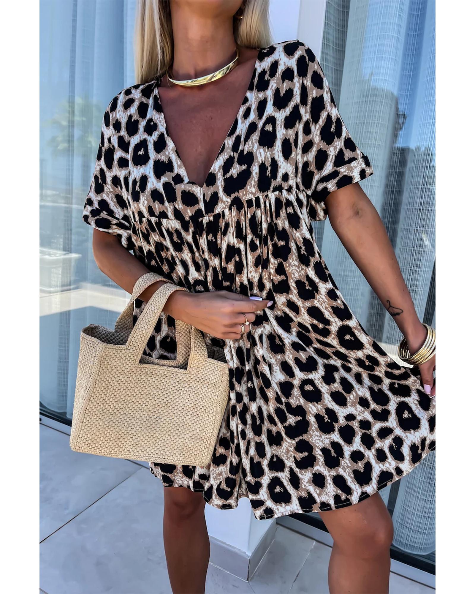 Khaki Cheetah Print Backless V Neck Loose Fit Mini Dress – S