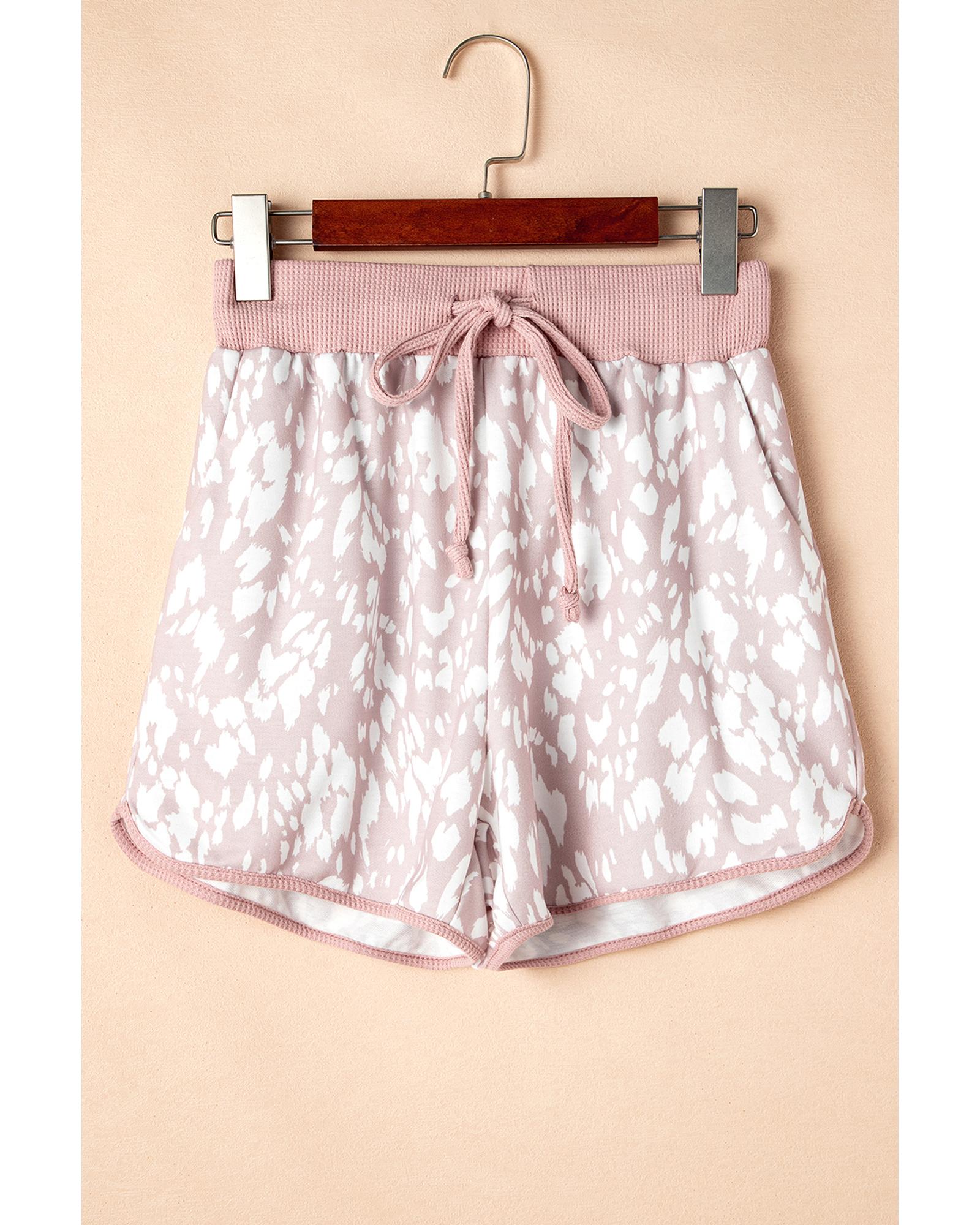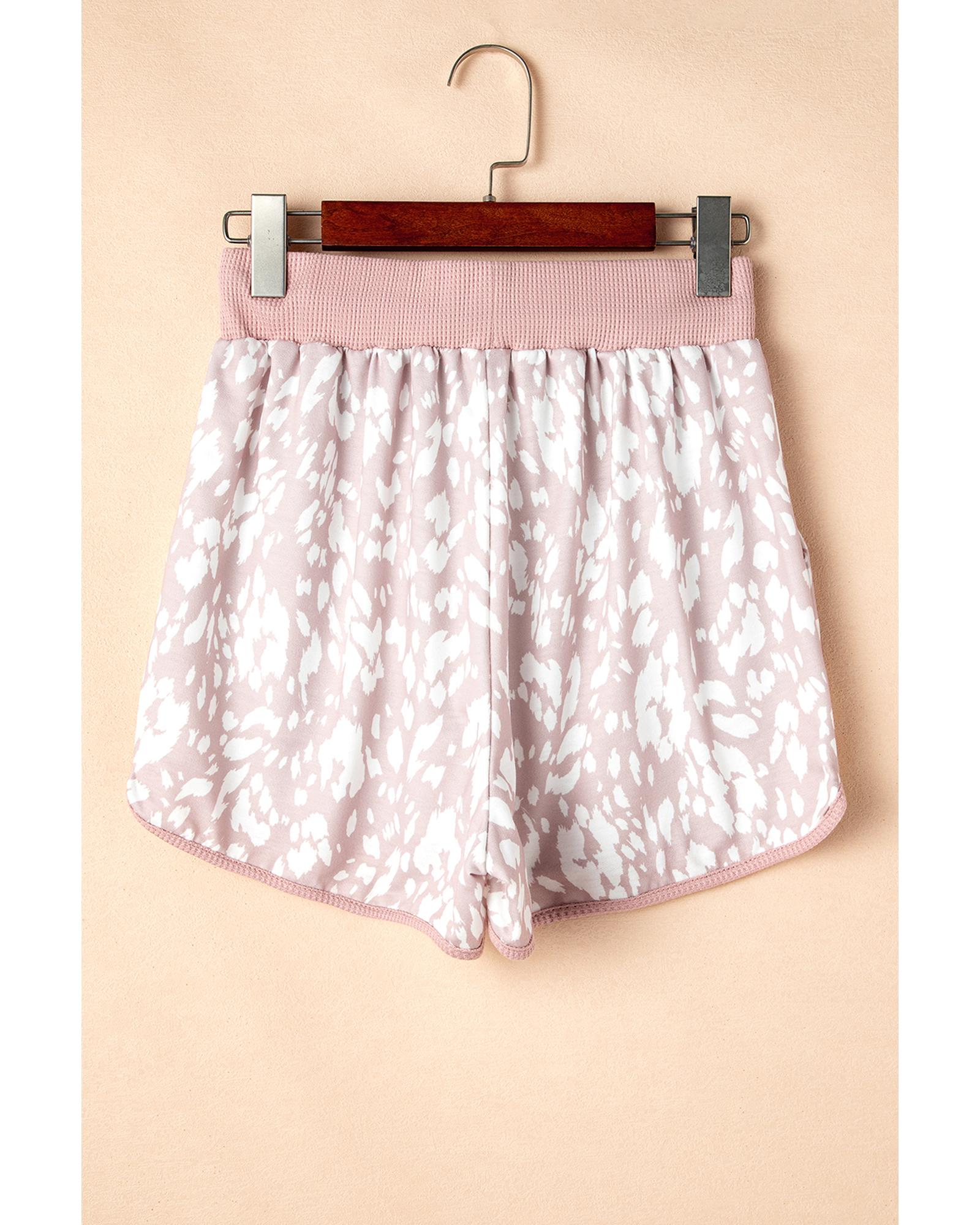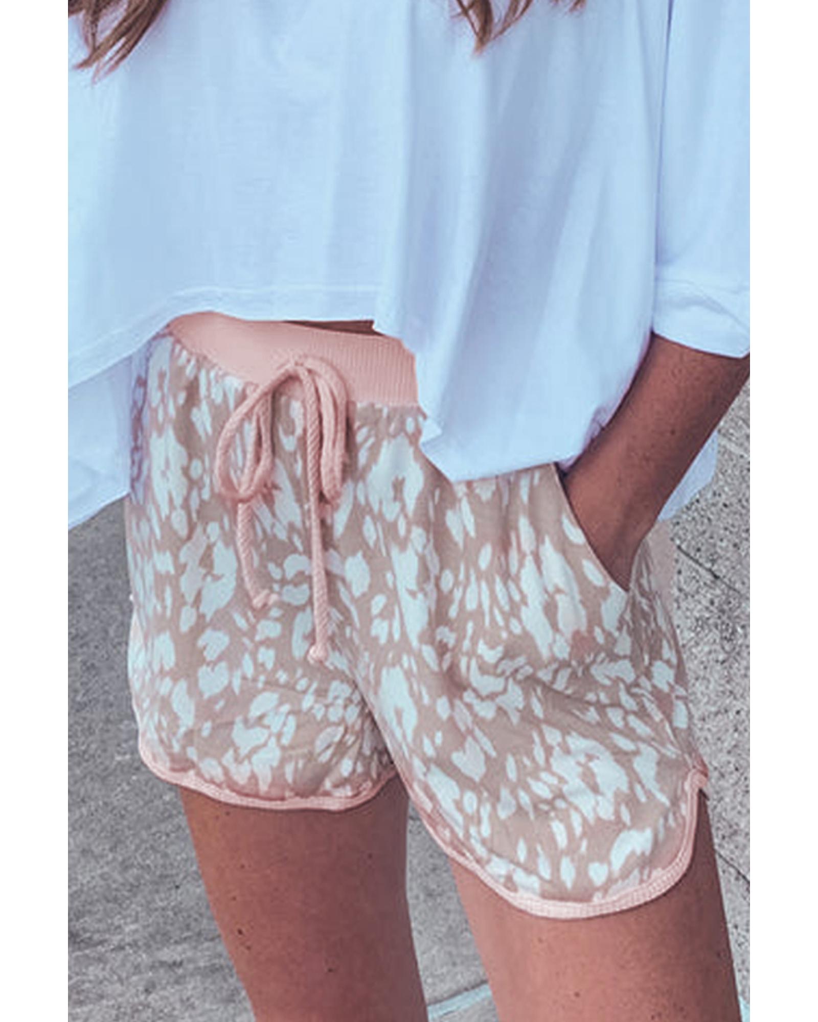 Khaki Classic Leopard Arched Hem Elastic Waist Casual Shorts – L
