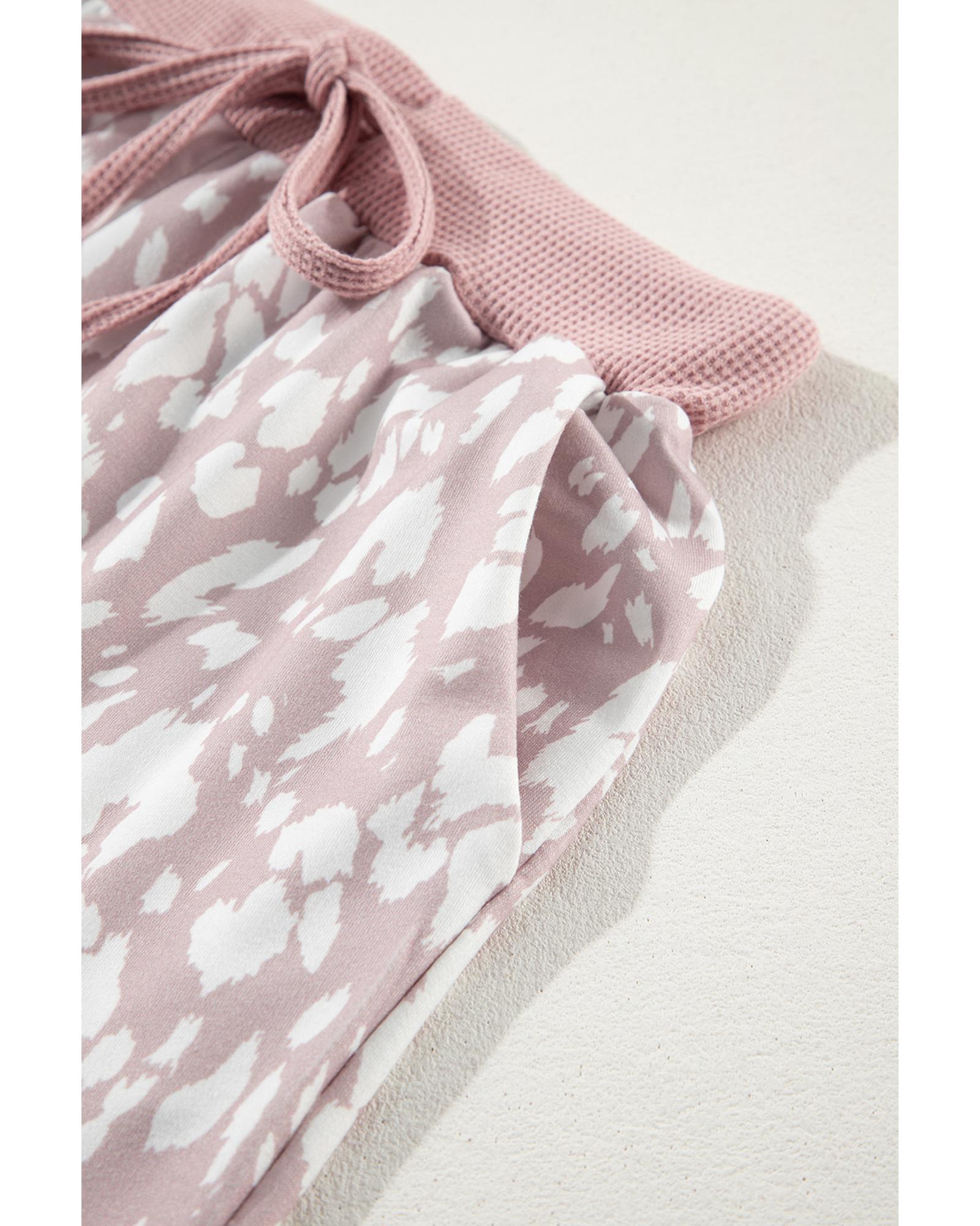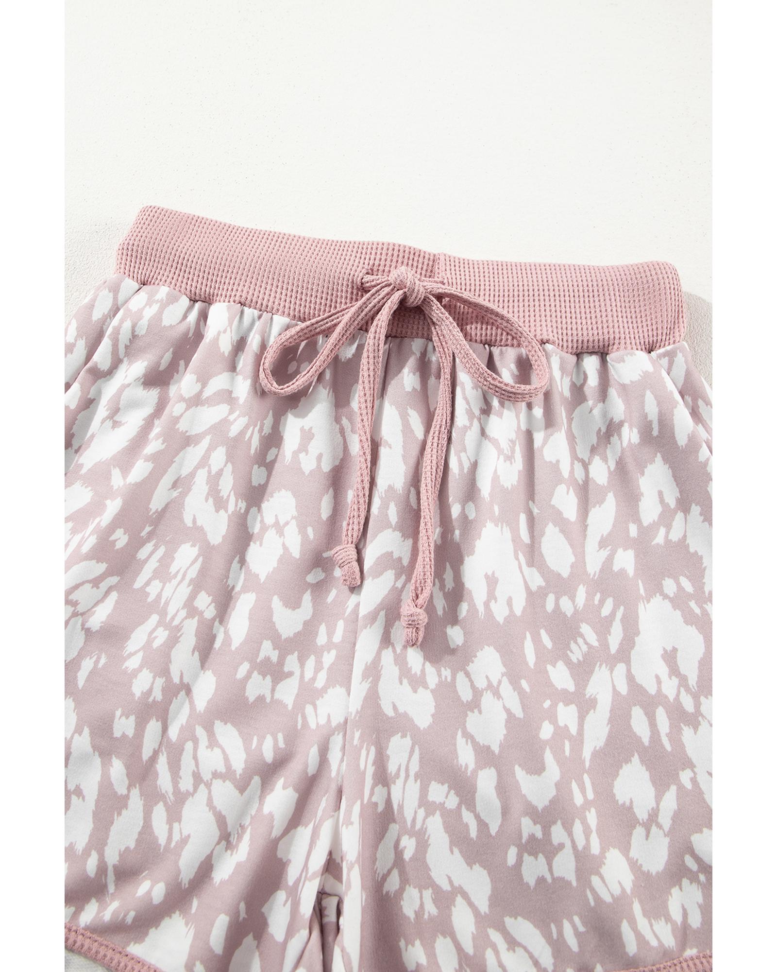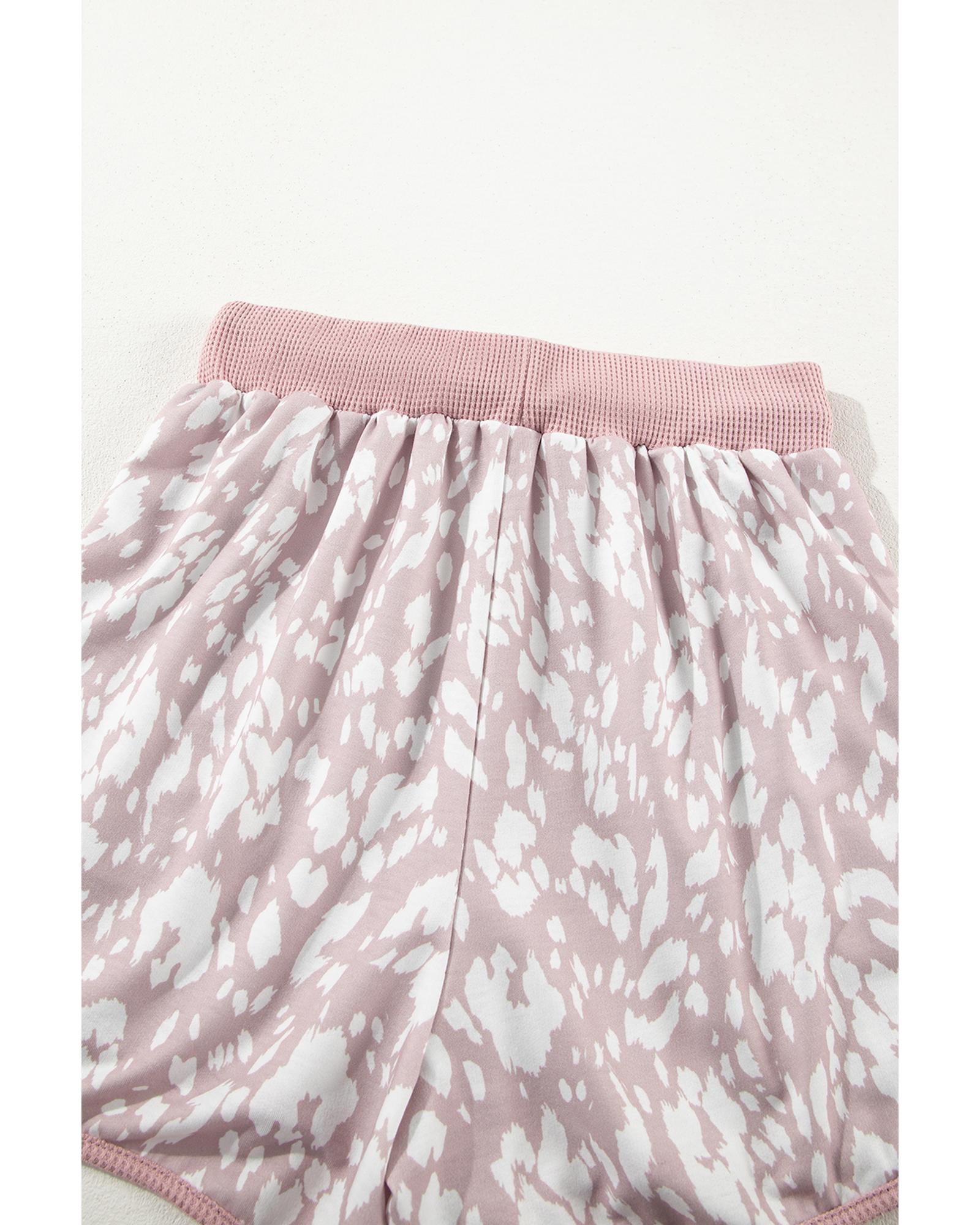 Khaki Classic Leopard Arched Hem Elastic Waist Casual Shorts – S