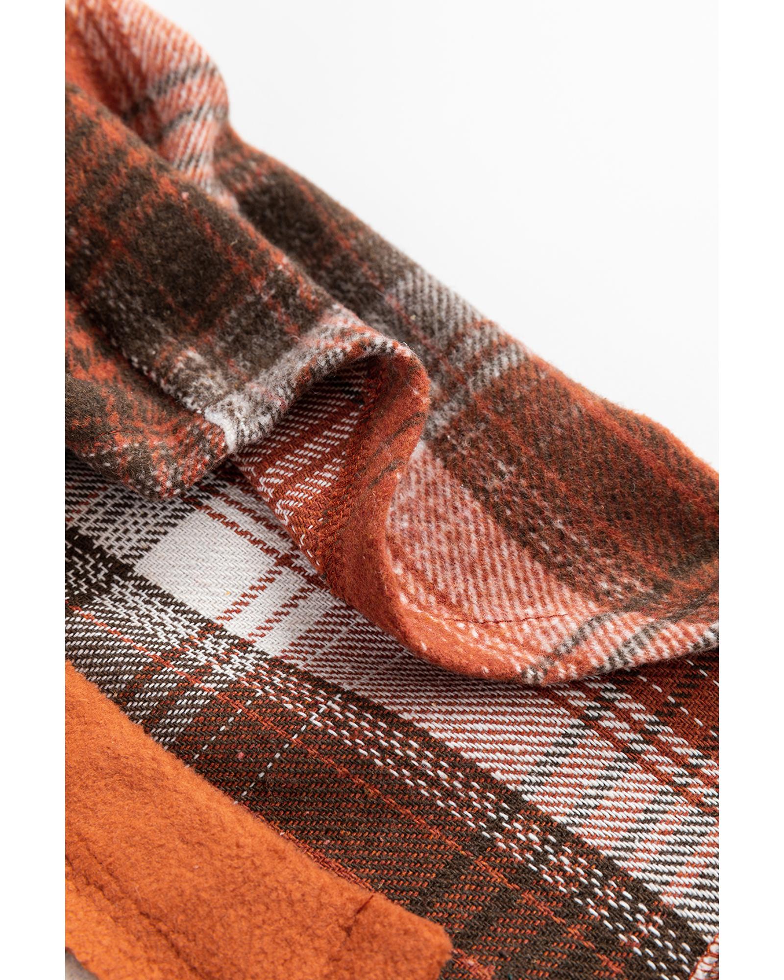 Black Plaid Print Flap Pockets Contrast Hooded Loose Shacket - XL