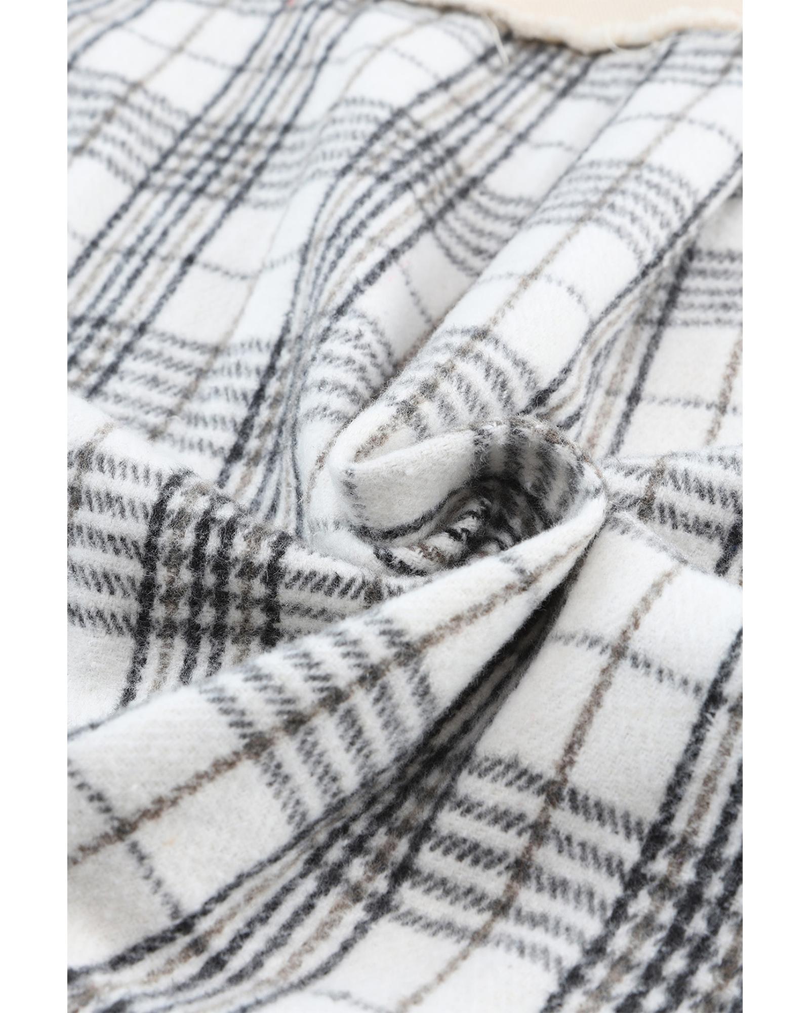 Light French Beige Plaid Patchwork Flap Detail Button Up Shacket - L
