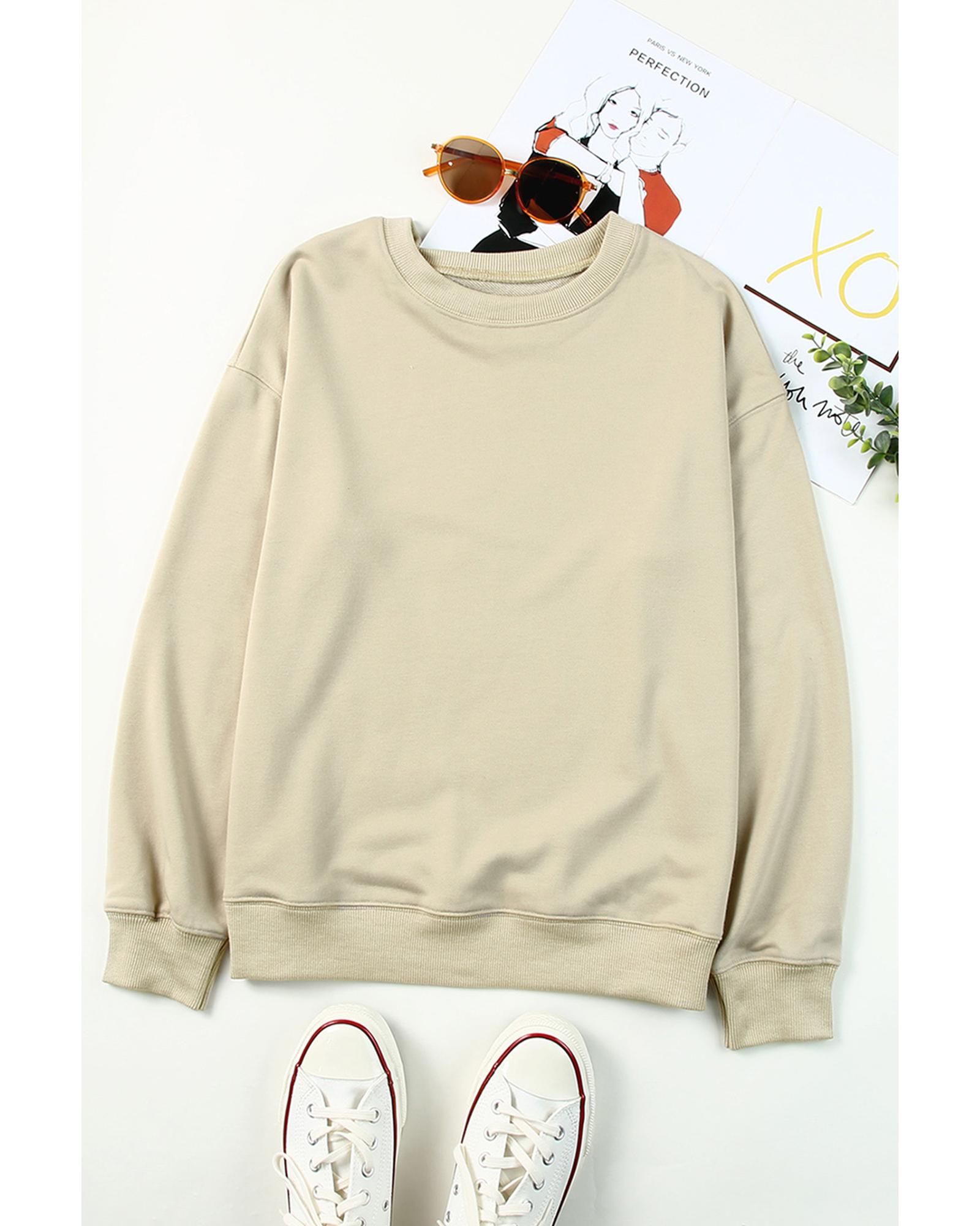 Khaki Fall Vibe Pumpkin Print Round Neck Sweatshirt – S