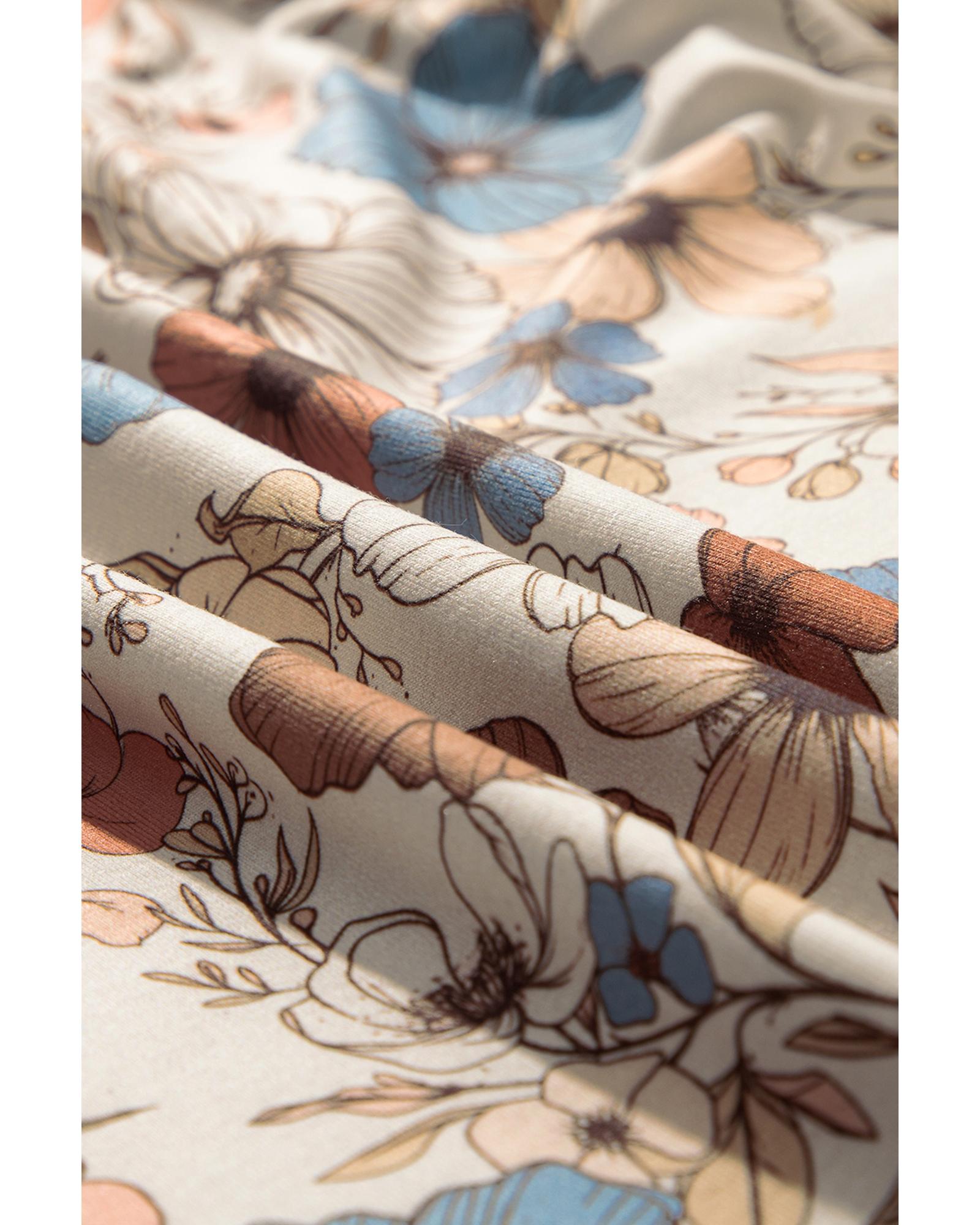 Khaki Floral Print Loose Crew Neck Long Sleeve T Shirt – L