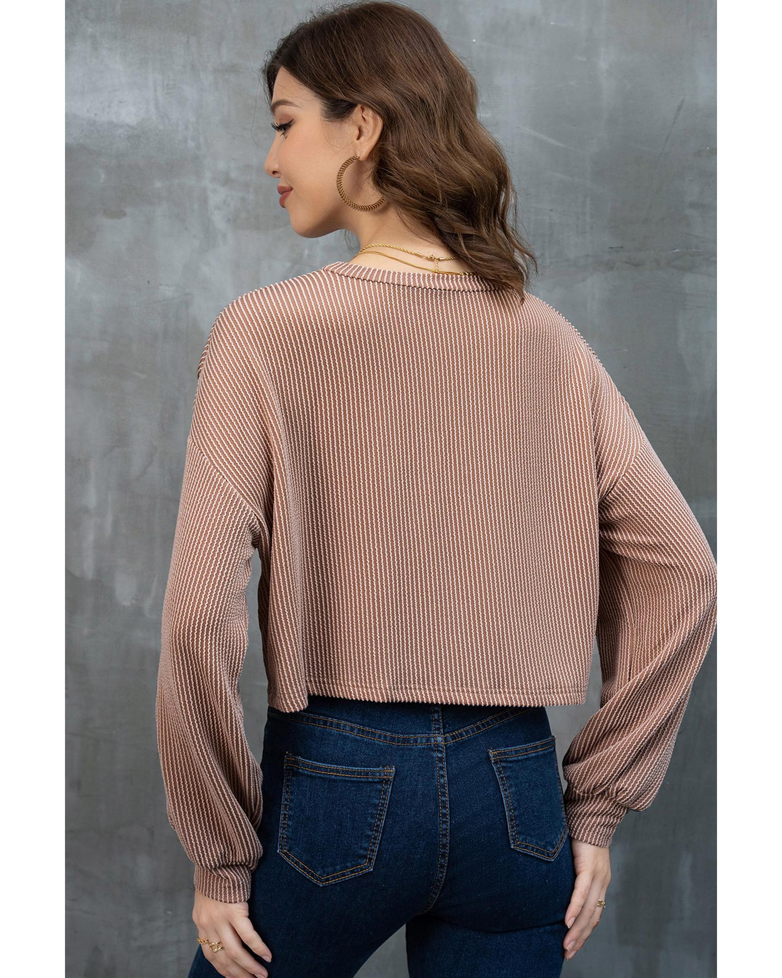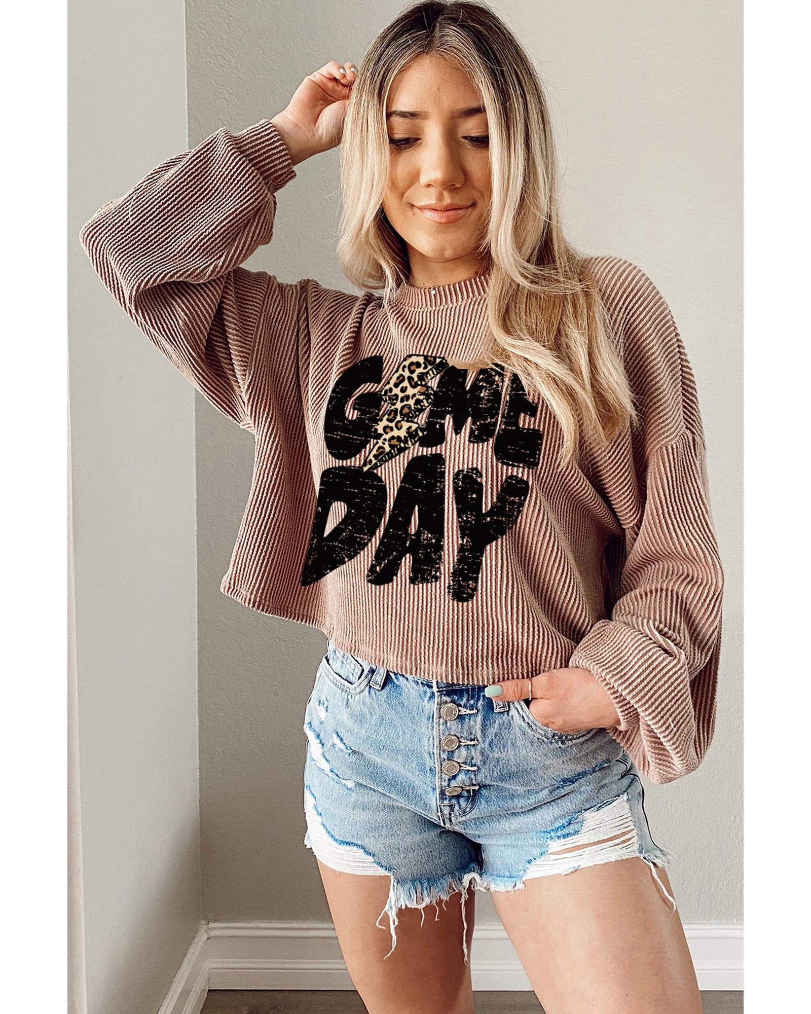 • Khaki Game Day Graphic Crop Rugby Football Corded Knit Top