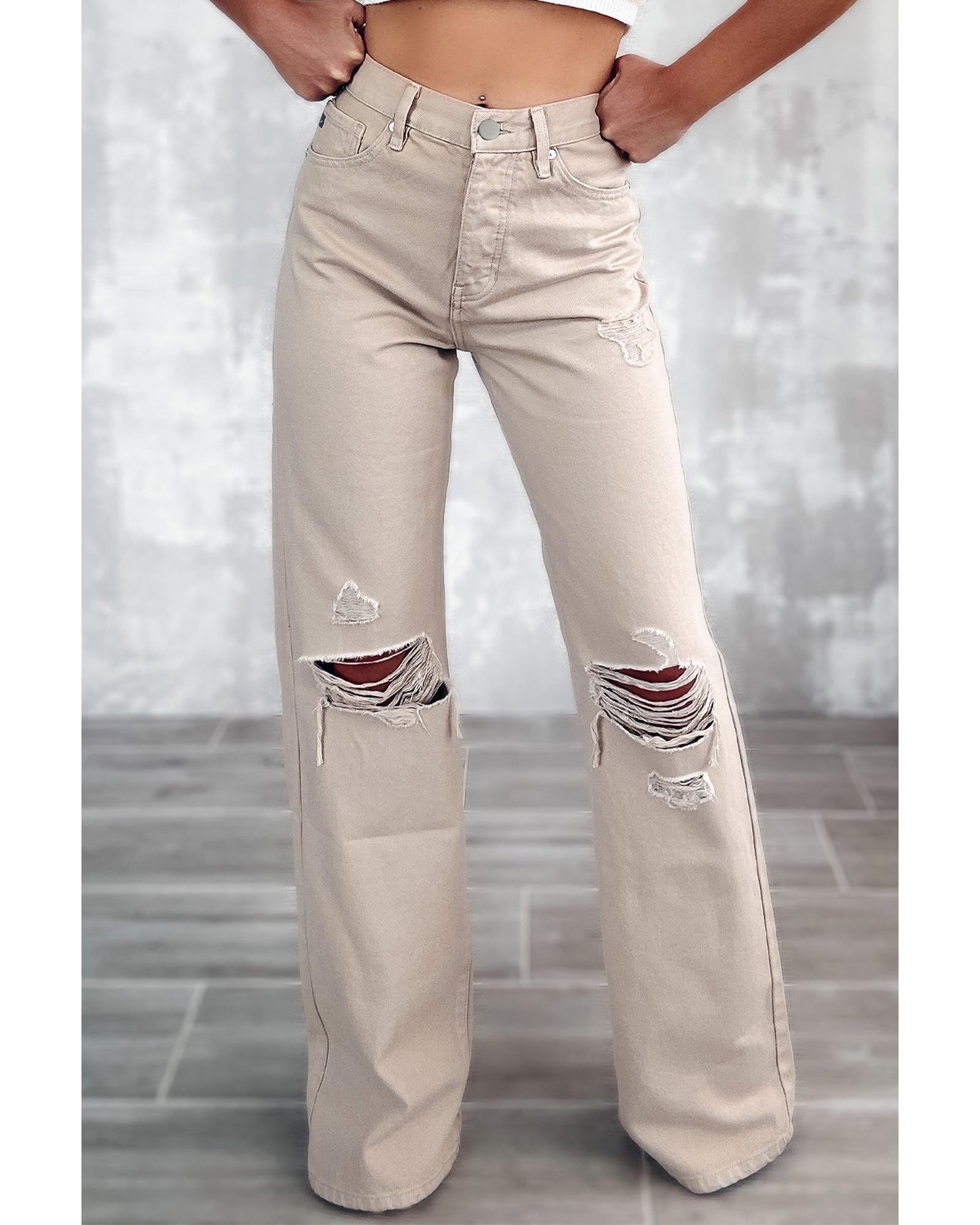 - Stylish Khaki High Waist Ripped Wide