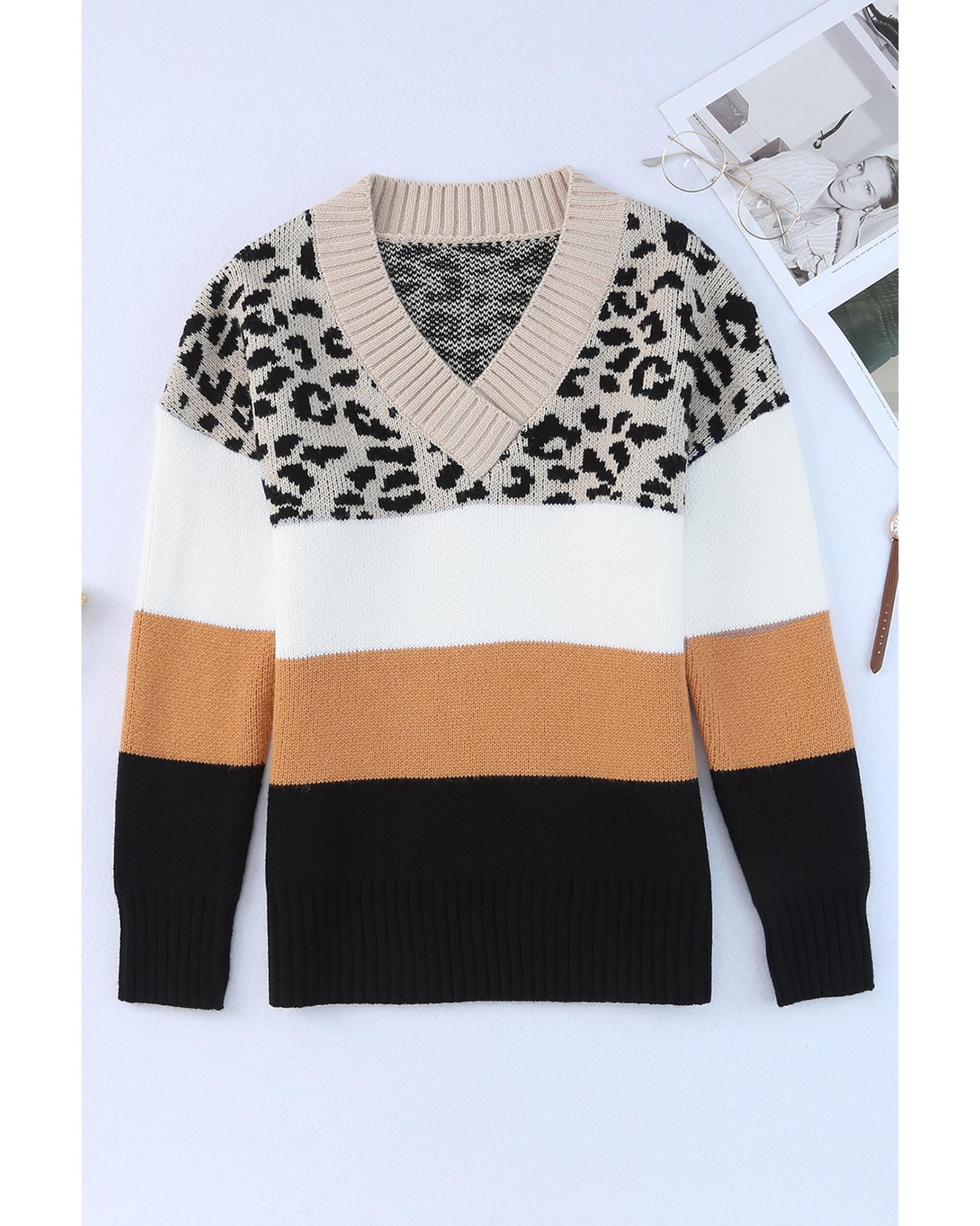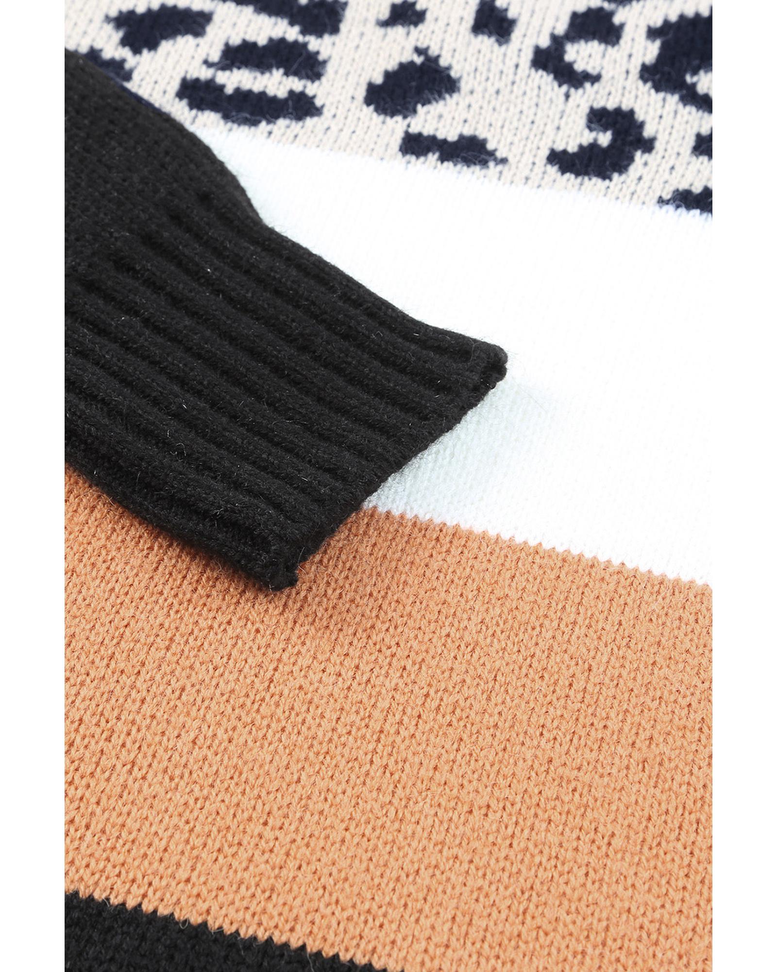Khaki Leopard Color Block Long Sleeve Sweater – L
