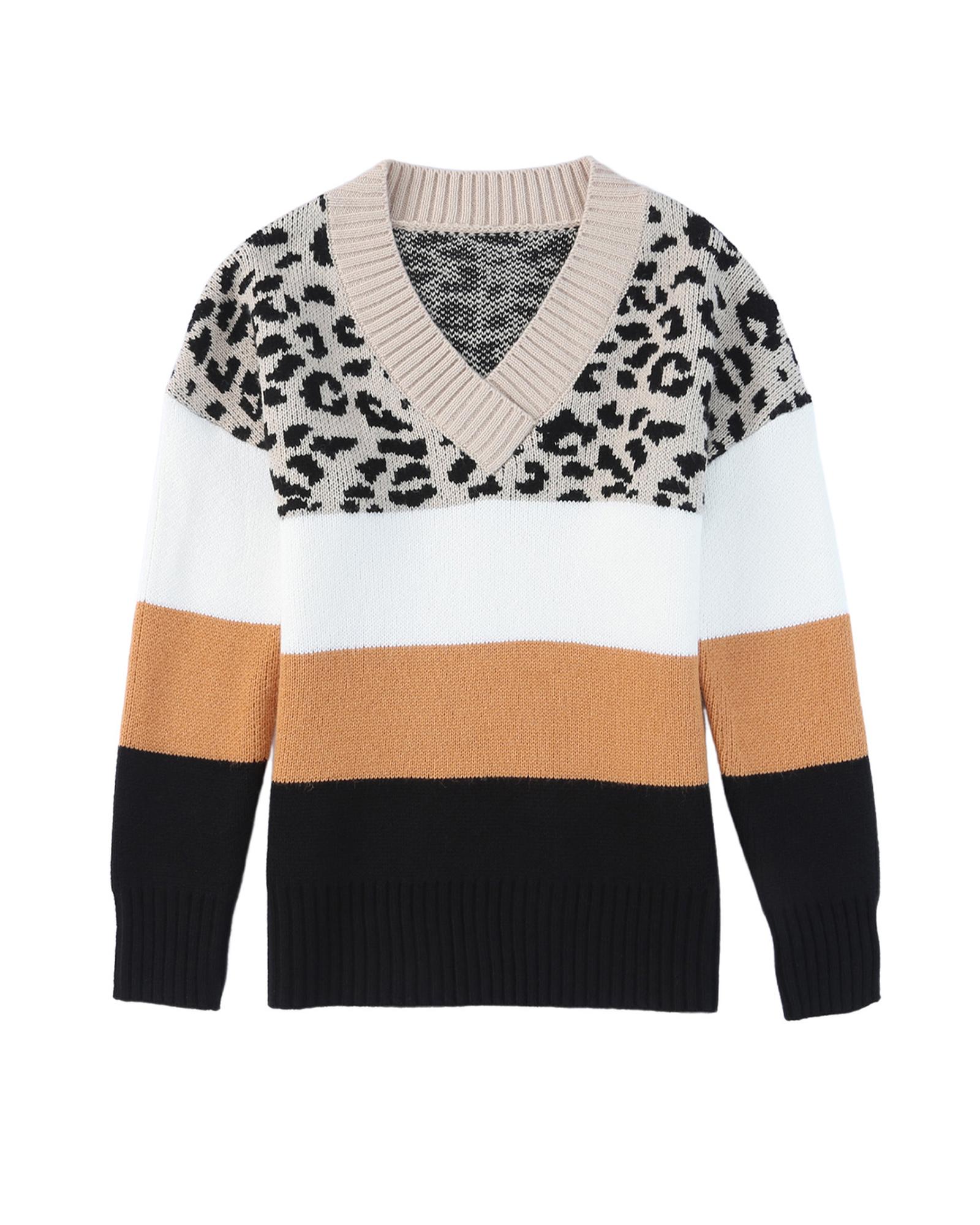 Khaki Leopard Color Block Long Sleeve Sweater – XL