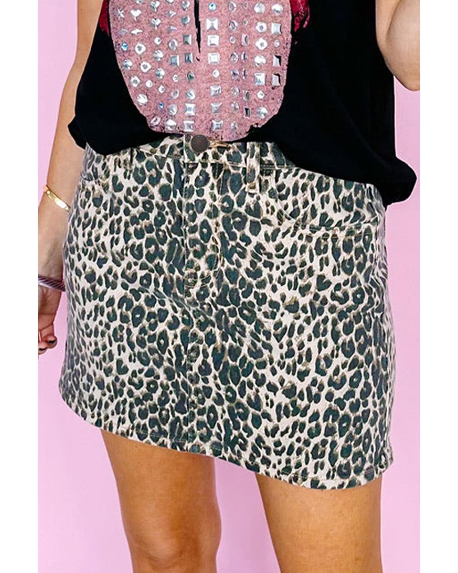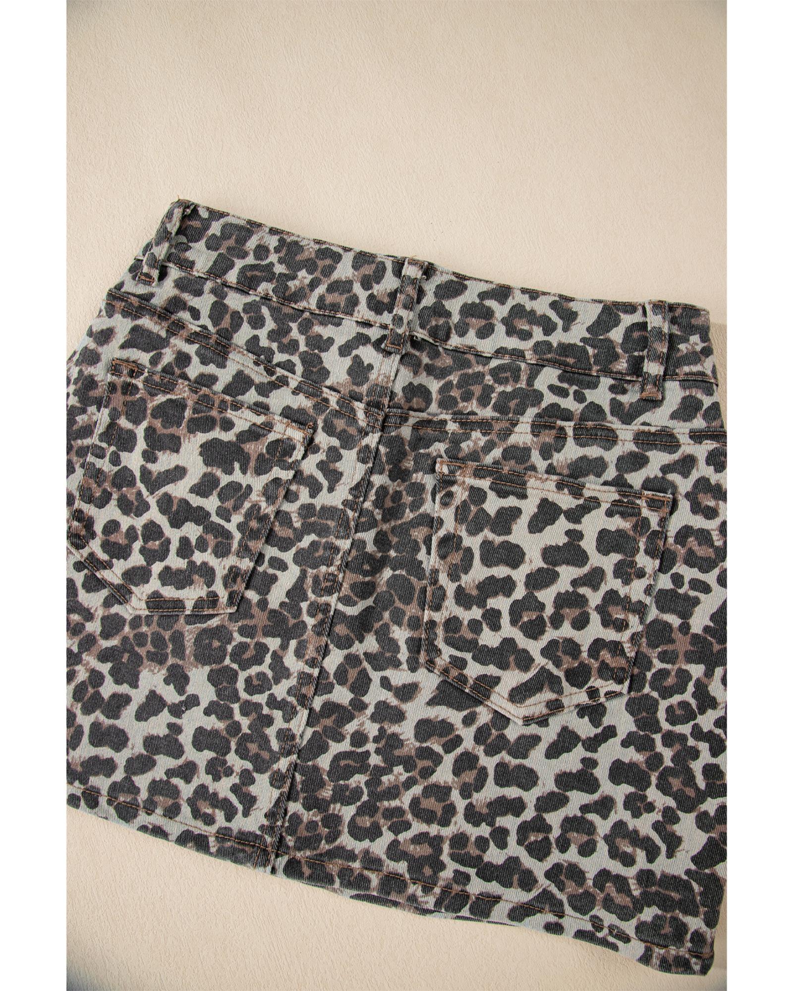 Khaki Leopard Denim Mini Skirt – 12 US