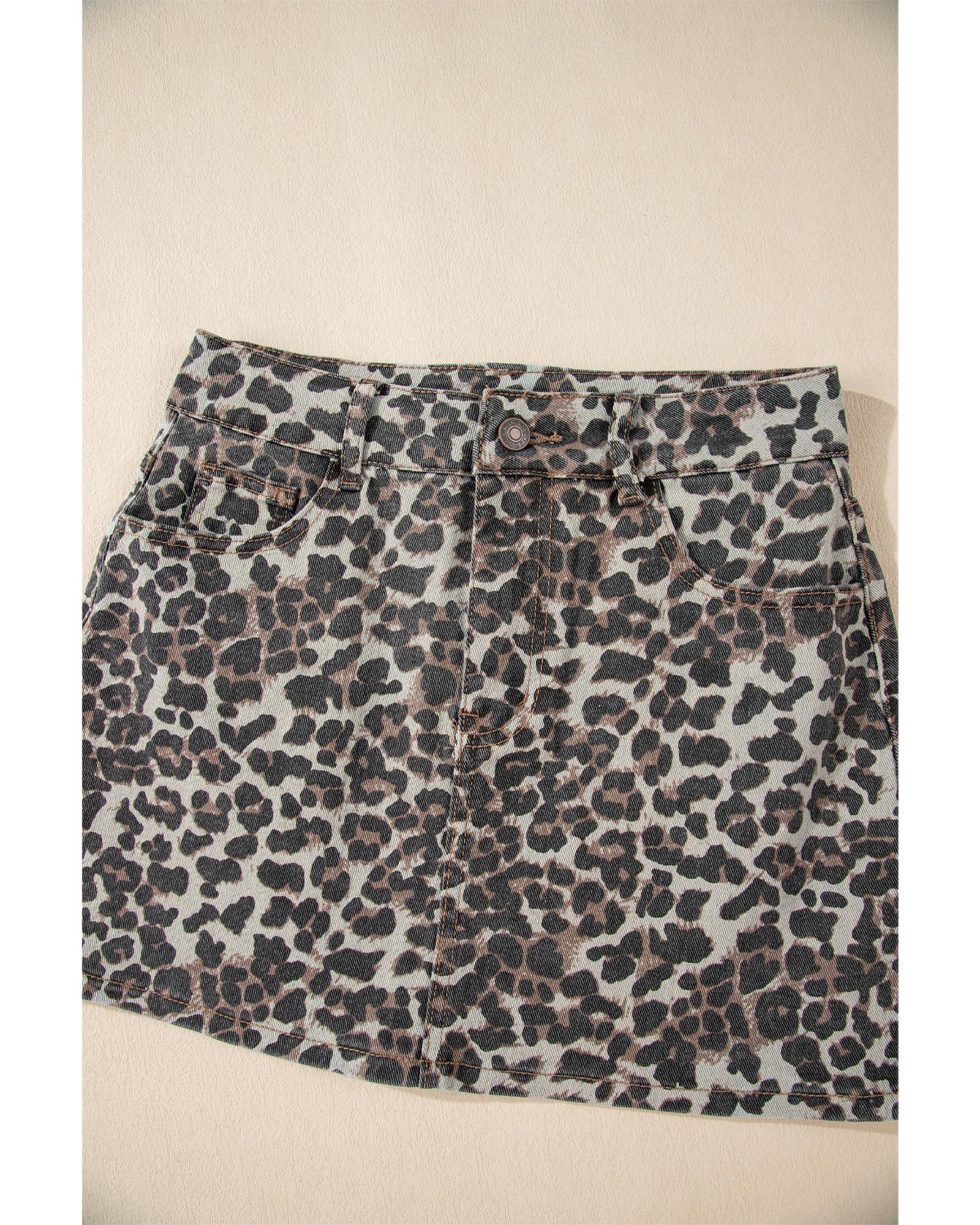 Khaki Leopard Denim Mini Skirt – 16 US