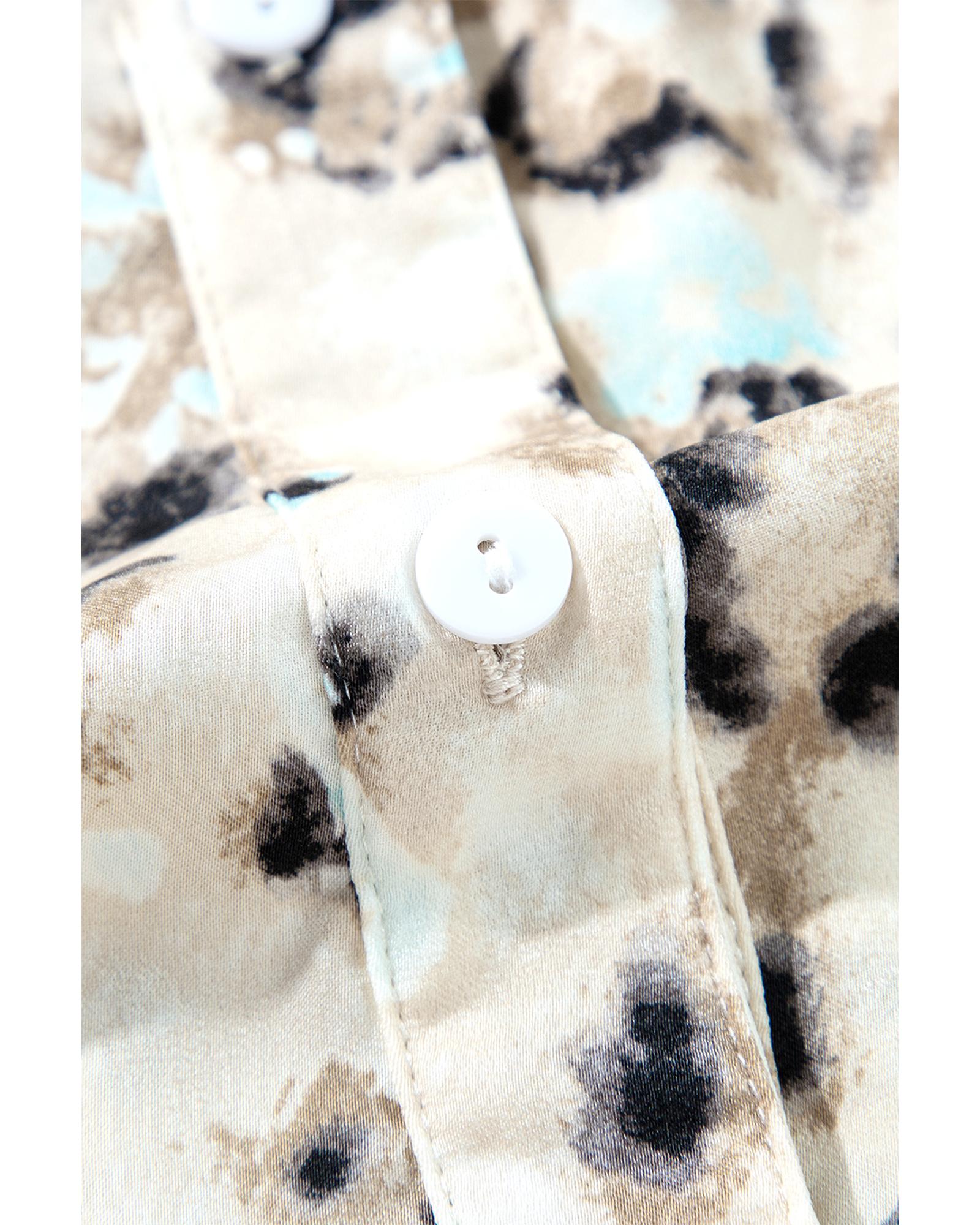 Khaki Leopard Print Buttoned Front 3/4 Sleeve Tiered Ruffled Hem Dress – M